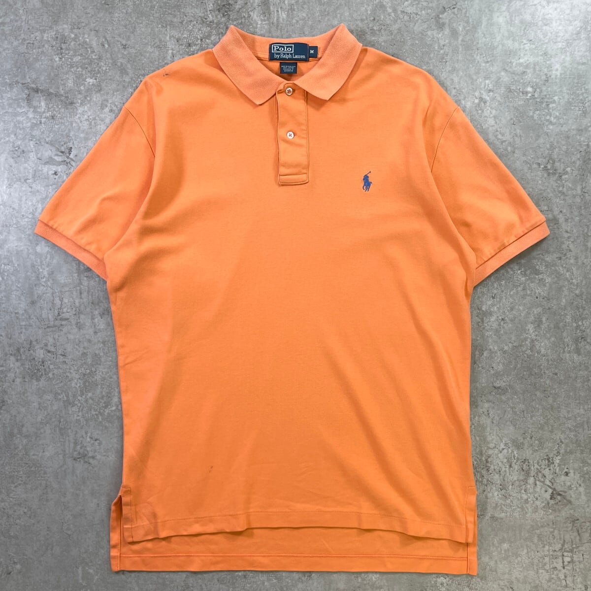 ■Polo by Ralph Lauren ポロバイラルフローレン ポロシャツ メンズL相当 古着 ワンポイントロゴ刺繍 アプリコットオレンジ【ポロシャツ・ラガーシャツ】/オレンジ