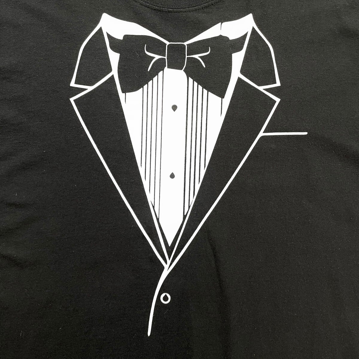タキシード だまし絵プリントTシャツ メンズL 古着 アート 黒【Tシャツ】/ブラック