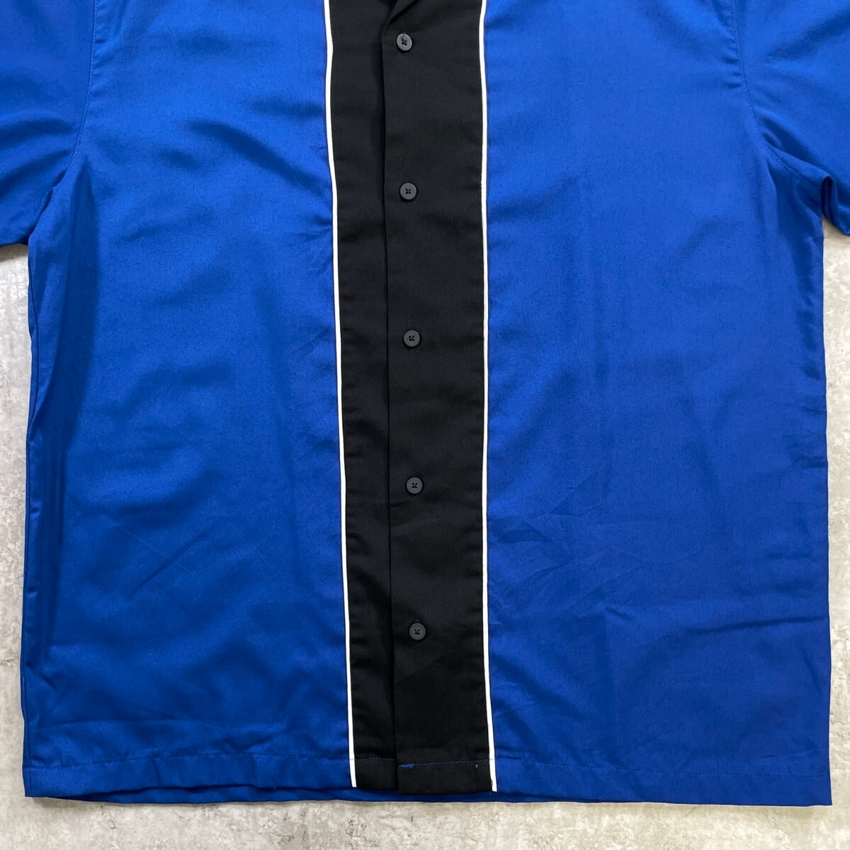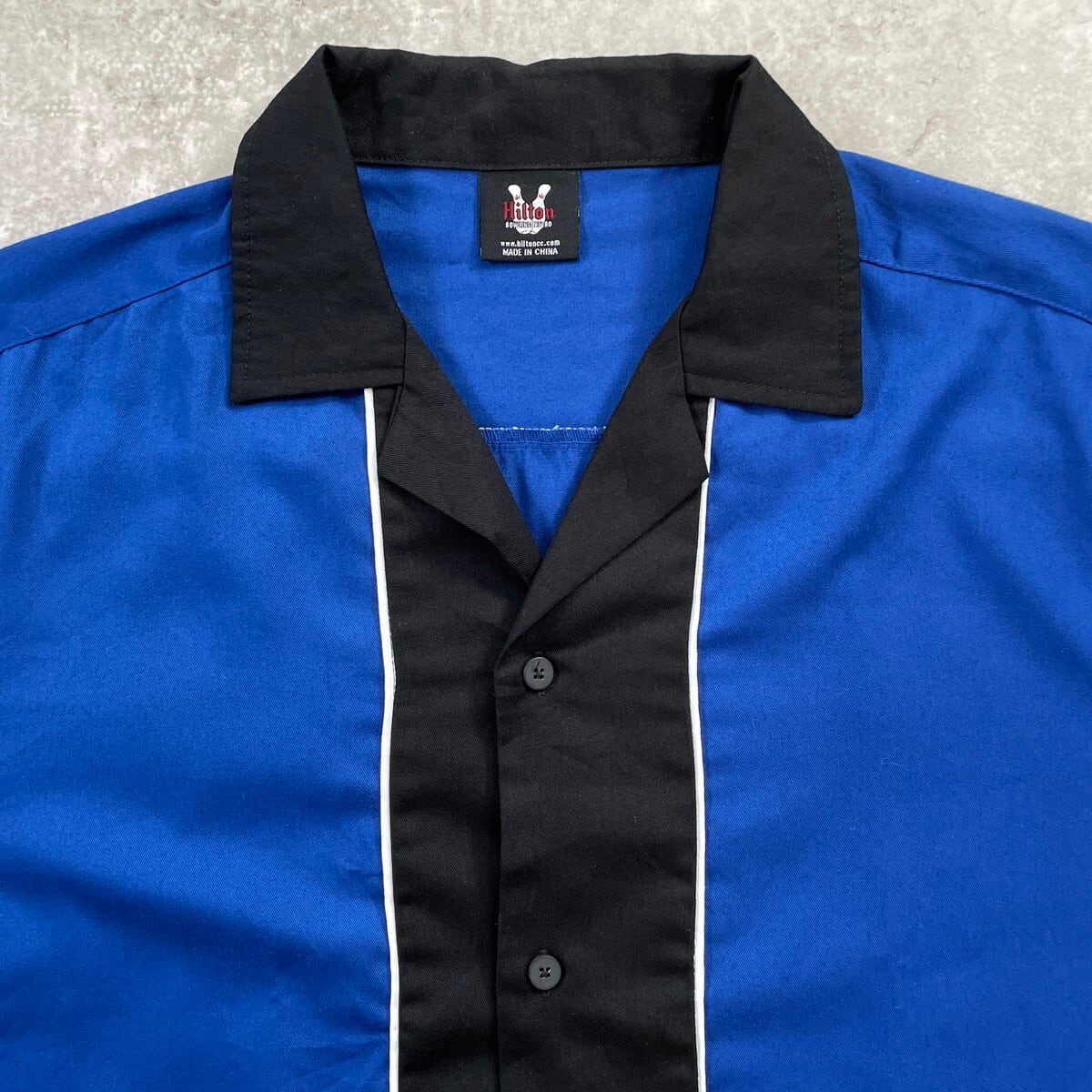 ■HILTON ヒルトン 開襟 ツートンカラー ボウリングシャツ メンズXL相当 古着 ボックスシルエット ボーリングシャツ オープンカラー バックプリント ブラック ブルー【半袖シャツ】/マルチカラー