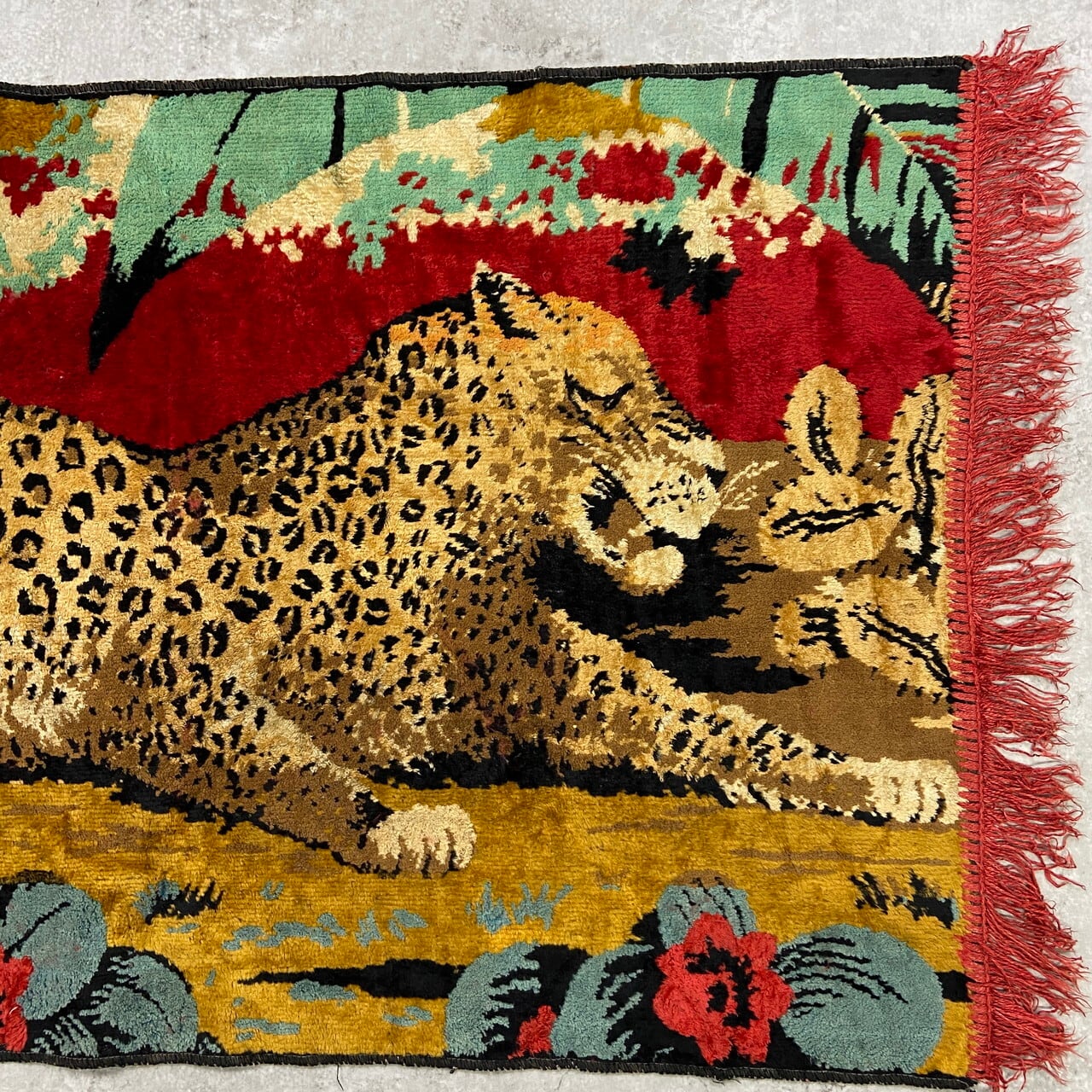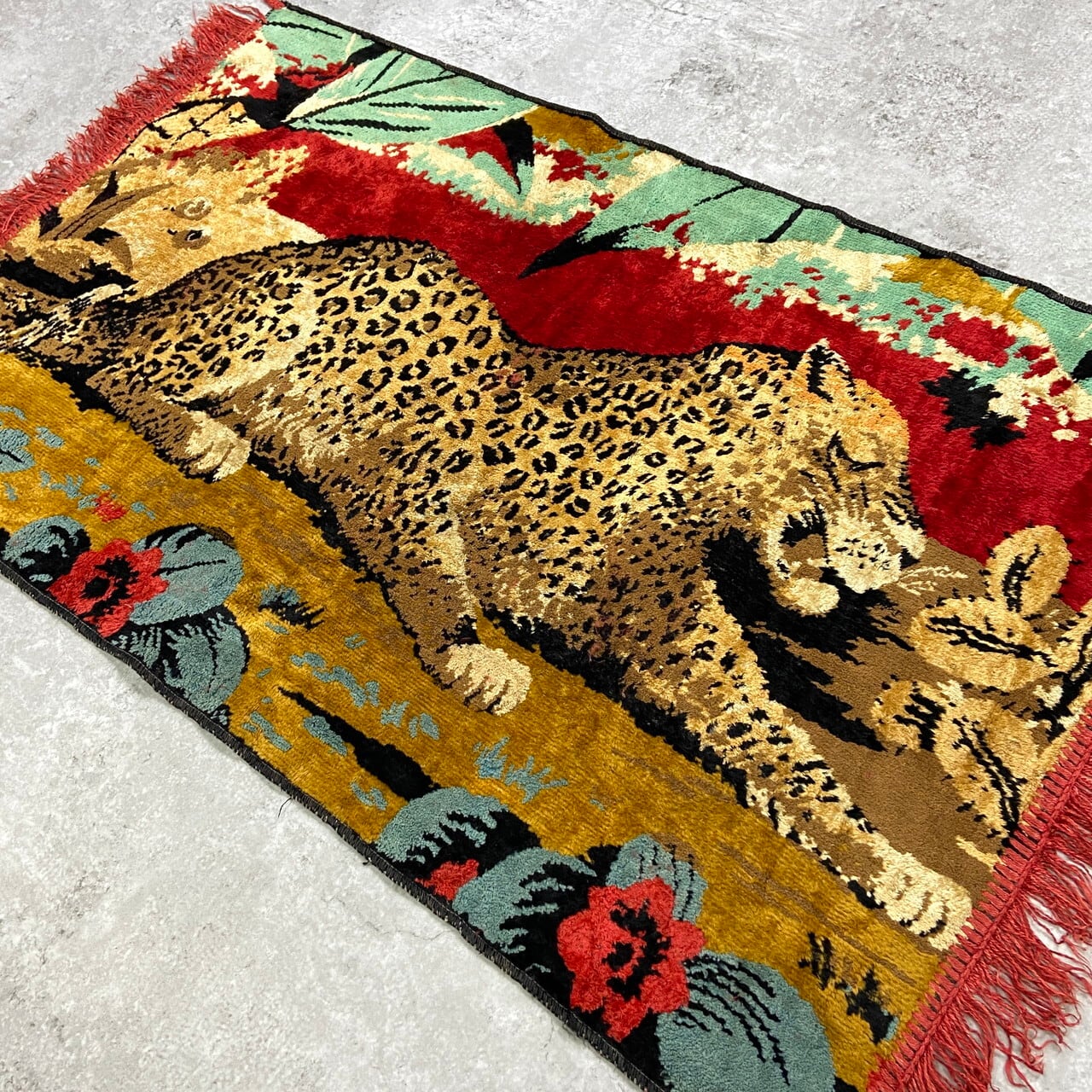 ■70-80年代 レオパード ヒョウ柄 ベルベット ラグ タペストリー 98×55 アニマル ラグ 壁掛け インテリア 什器 VINTAGE ヴィンテージ ベロア /マルチカラー