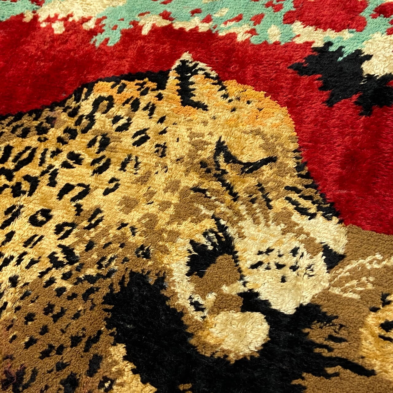 70-80年代 レオパード ヒョウ柄 ベルベット ラグ タペストリー 98×55 アニマル ラグ 壁掛け インテリア 什器 VINTAGE ヴィンテージ ベロア【ラグ】 /マルチカラー