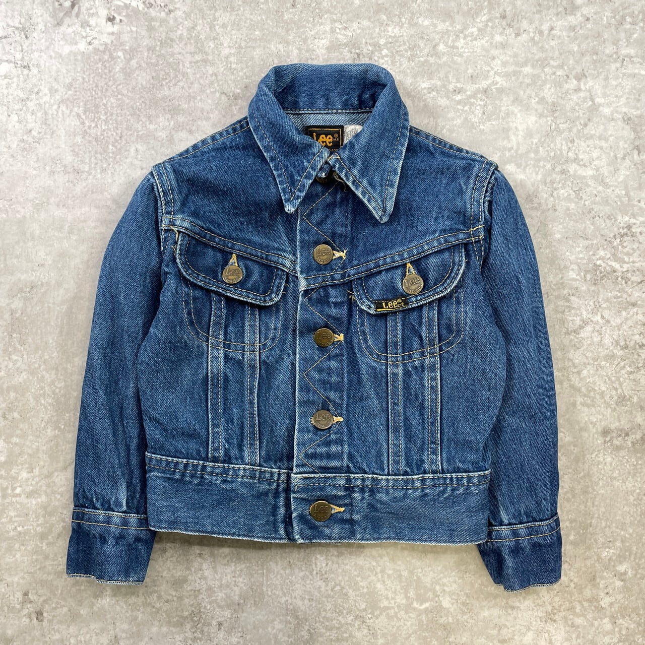 【kids】70-80年代 USA製 リー Lee 101J デニムジャケット キッズ 4歳相当 サイズ100cm相当 古着 キッズ ベビー 子供服 VINTAGE ヴィンテージ アメカジ 黒タグ ユニオンチケット RIDERS 青色【デニムジャケット】/ブルー