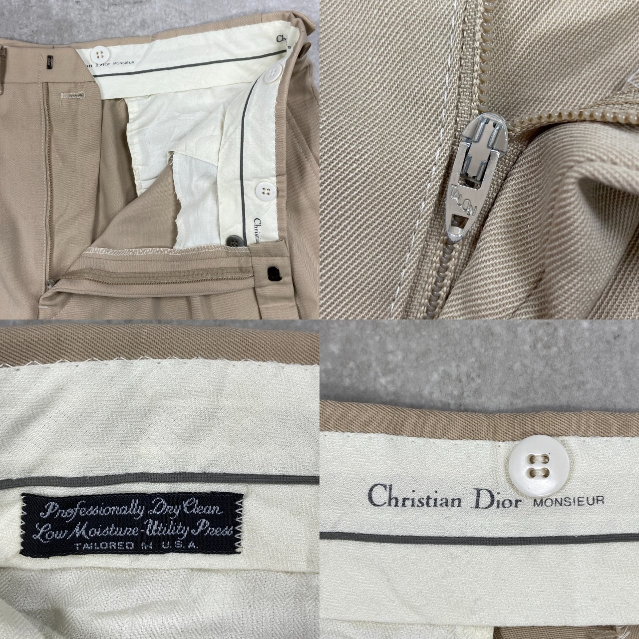 ■80年代 USA製 Christian Dior MONSIEUR クリスチャンディオール 2タック ワイドスラックス メンズW37相当 古着 80s ヴィンテージ VINTAGE ロケットタロン TALONジッパー【スラックス,スタプレ】/ベージュ