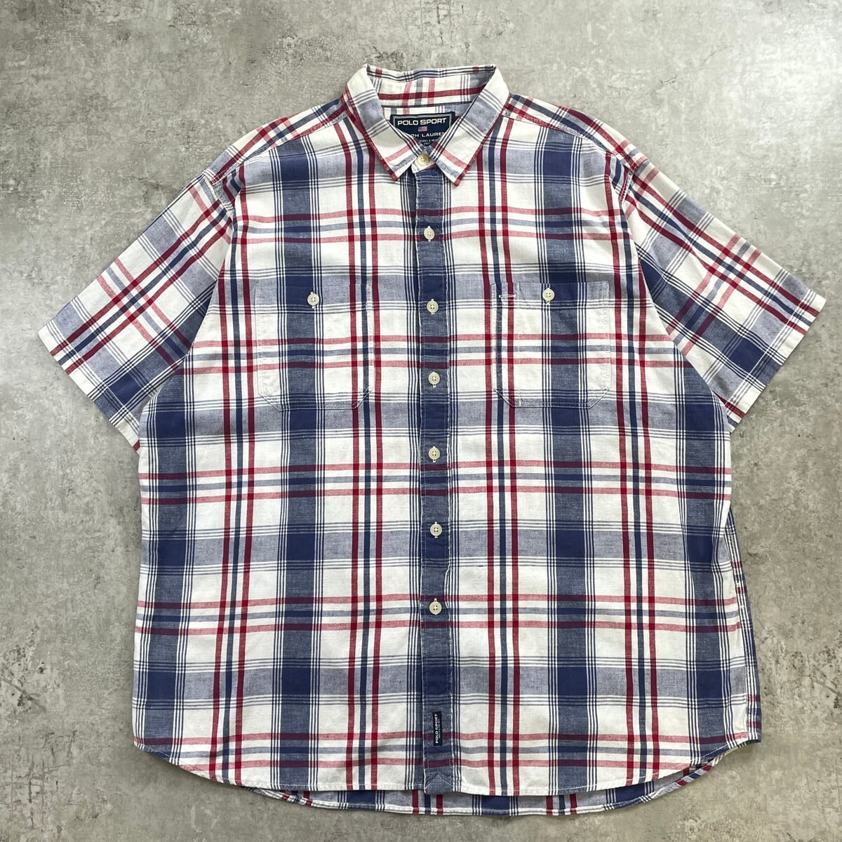 90年代 POLO SPORT ポロスポーツ RALPH LAUREN ラルフローレン マルチチェック リネン 半袖シャツ メンズ2XL 古着 90s VINTAGE ヴィンテージ ビッグサイズ 大きいサイズ【F2603】【半袖シャツ】/マルチカラー
