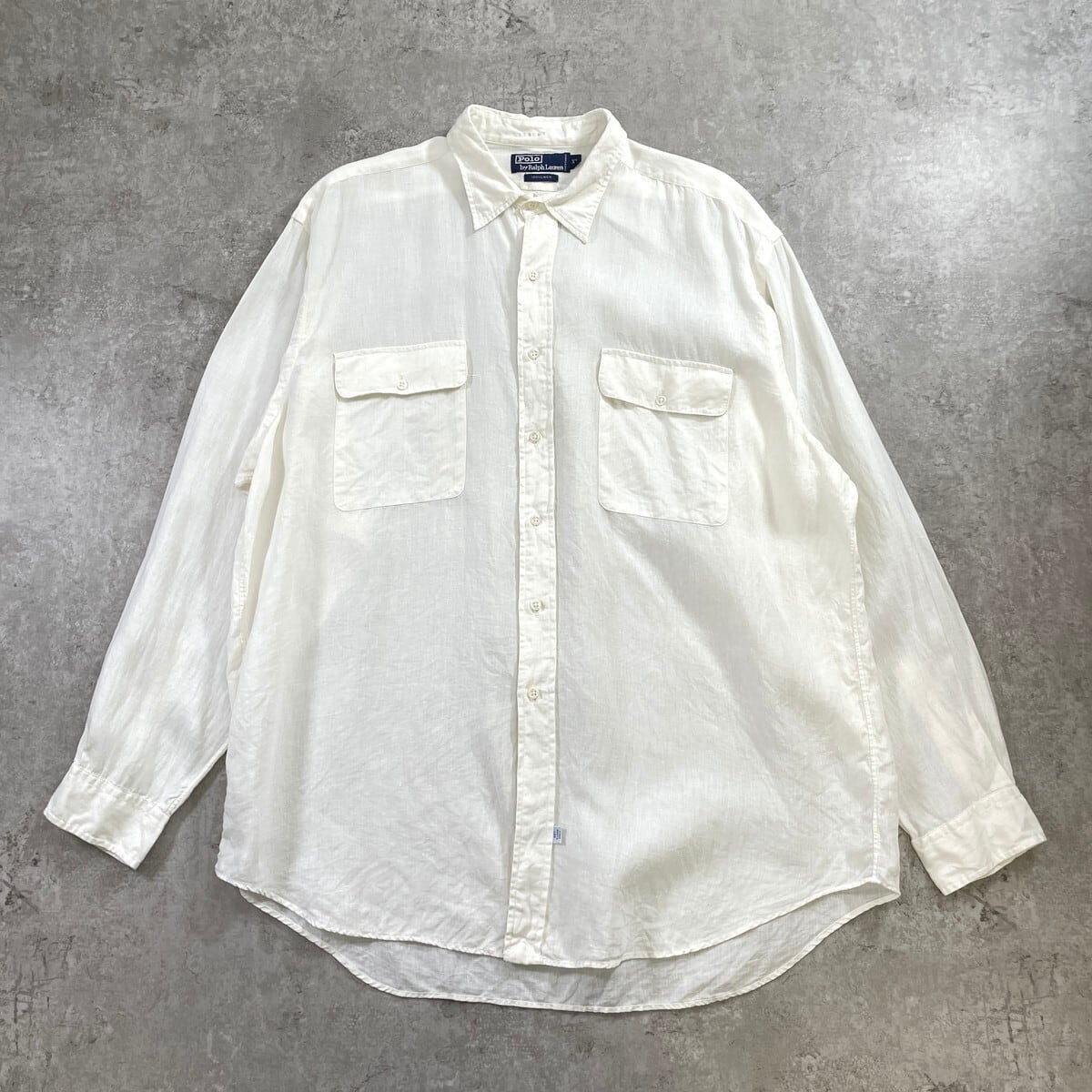 90年代 Polo by Ralph Lauren ポロバイラルフローレン リネンシャツ メンズXL 古着 90s ヴィンテージ VINTAGE アメカジ ポニー無し 白【長袖シャツ】/ホワイト