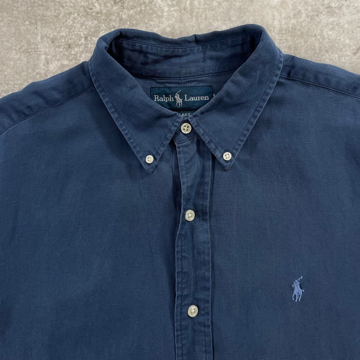 90年代 Ralph Lauren ラルフローレン BLAKE リネン×シルクシャツ メンズXL 古着 90s ヴィンテージ VINTAGE アメカジ フェードネイビー 紺色【長袖シャツ】/ネイビー