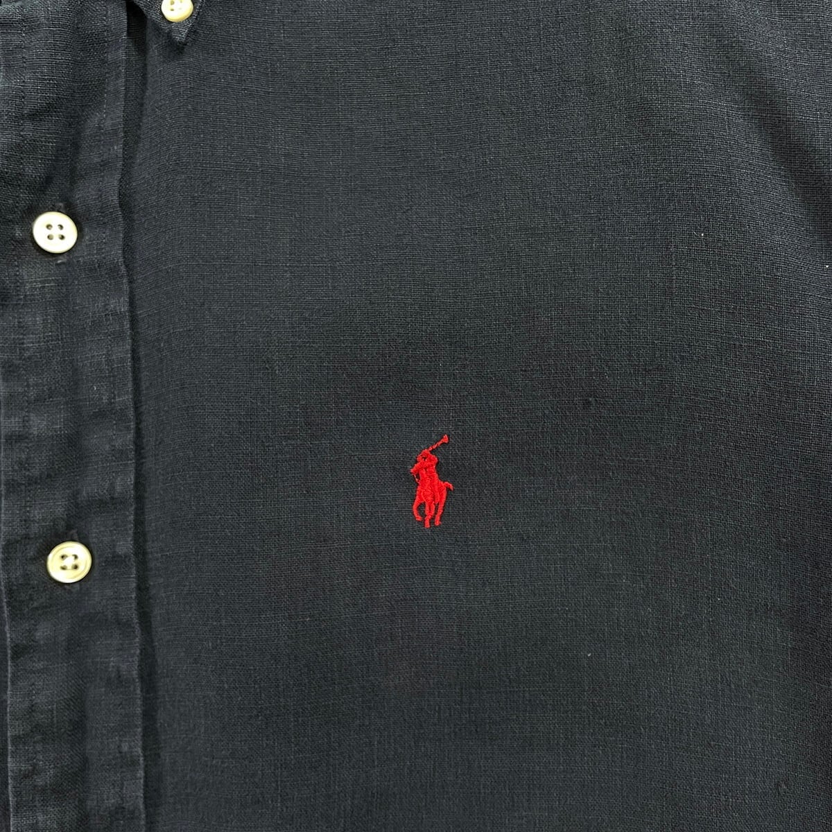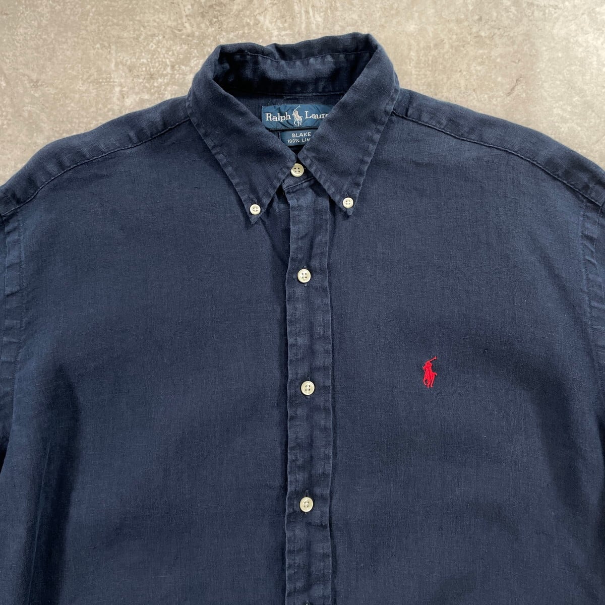 90年代 Ralph Lauren ラルフローレン BLAKE リネンシャツ メンズL相当 古着 90s ヴィンテージ VINTAGE アメカジ ダークネイビー 紺色【長袖シャツ】/ネイビー