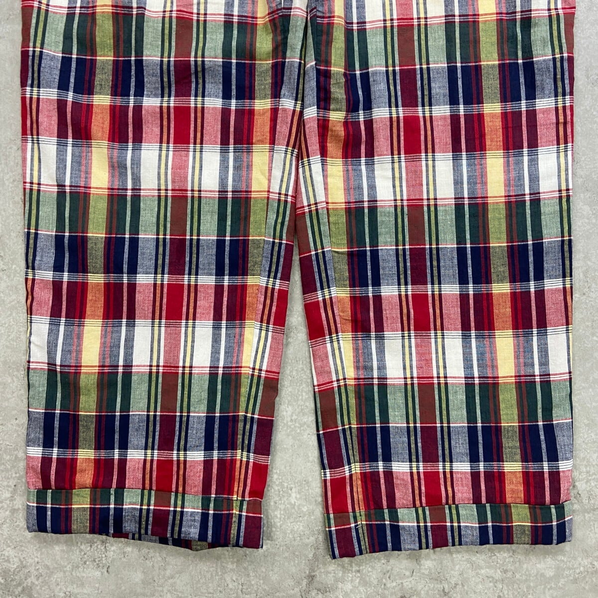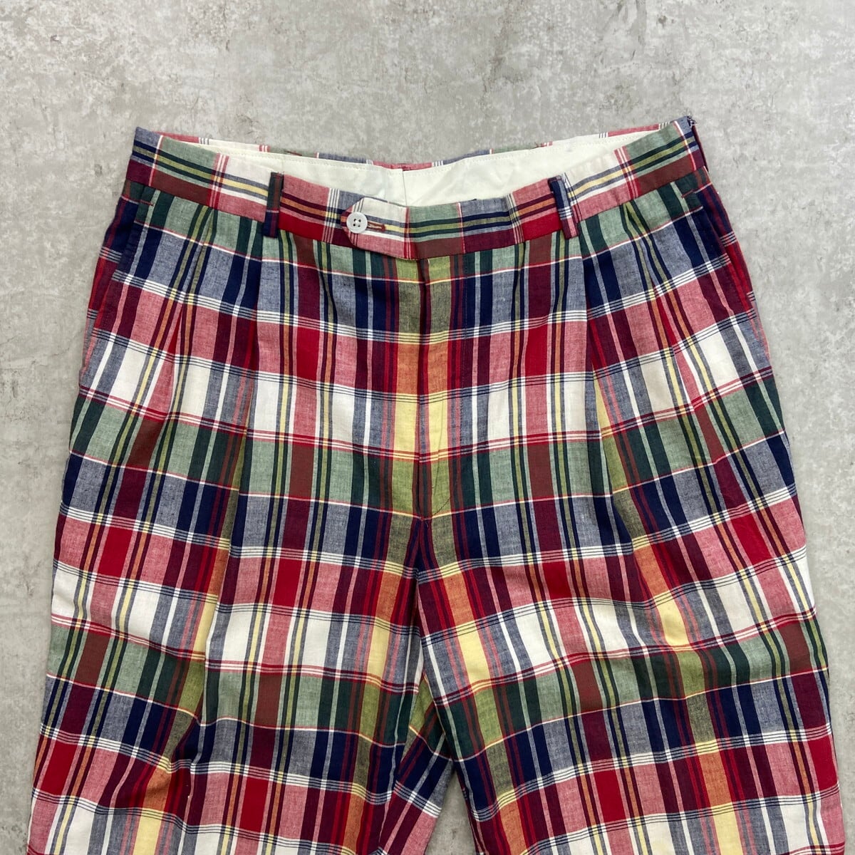■Berle 2タック マドラスチェック コットンパンツ メンズW34 古着 アメカジ レッド ネイビー グリーン イエロー【チノパン,コットンパンツ】/マルチカラー