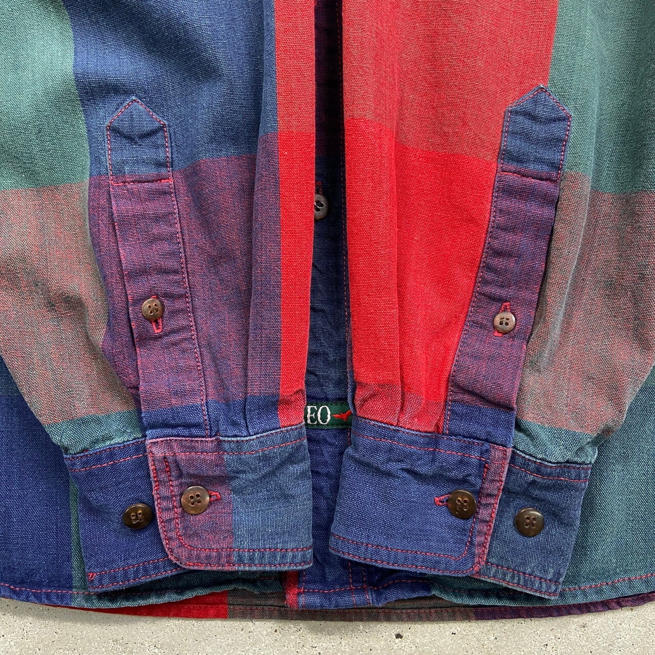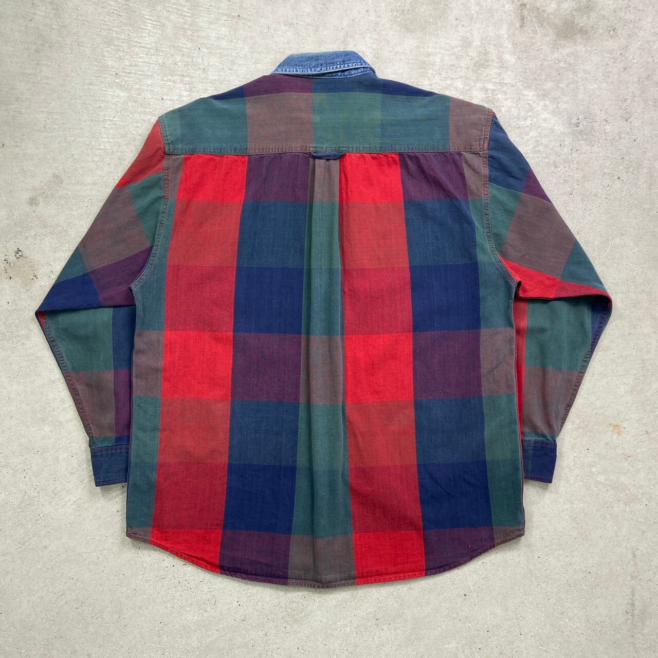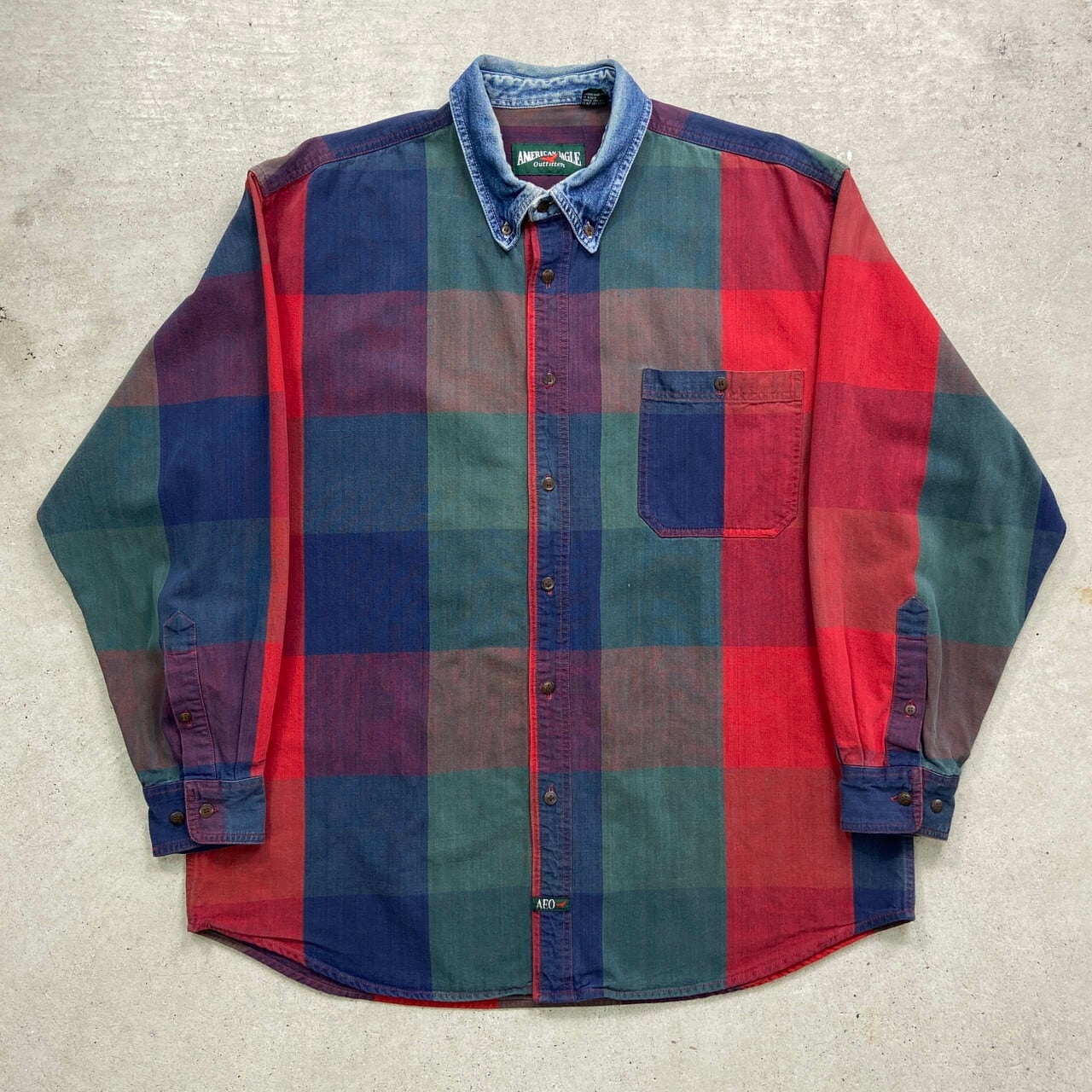 90年代 AMERICAN EAGLE アメリカンイーグル マルチチェックシャツ メンズL 古着 90s ヴィンテージ VINTAGE B.D ボタンダウンシャツ デニム襟【長袖シャツ】/マルチカラー