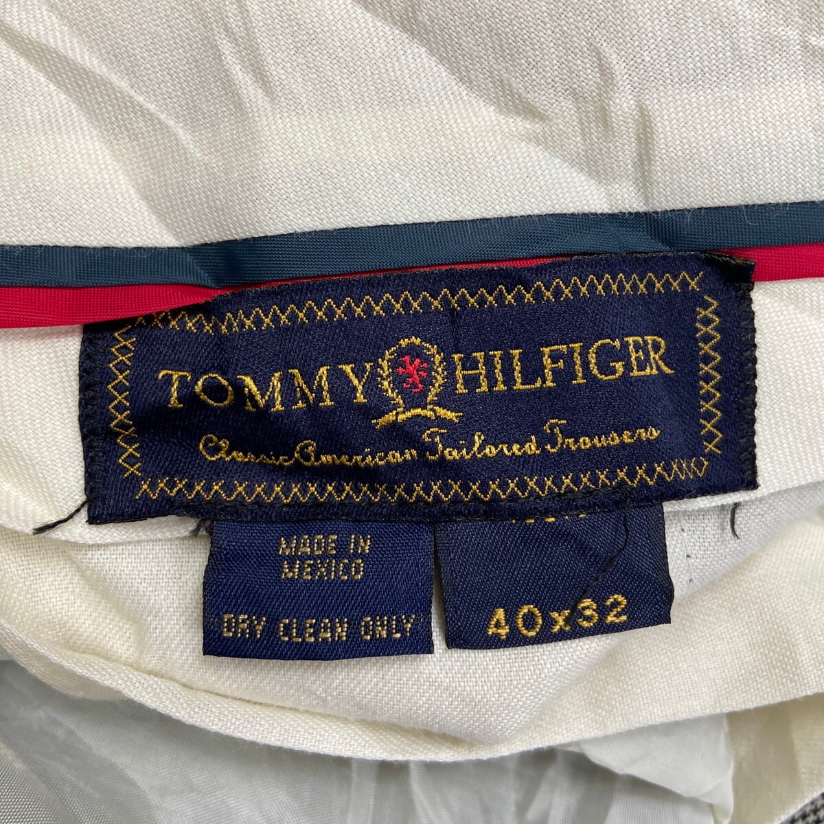 90年代 TOMMY HILFIGER トミーヒルフィガー 2タック 千鳥格子柄 ワイドスラックス メンズW42 古着 90s VINTAGE ヴィンテージ アメカジ ロケットタロン TALONジッパー ハウンドトゥース ビッグサイズ 大きいサイズ 灰色【スラックス,スタプレ】/グレー