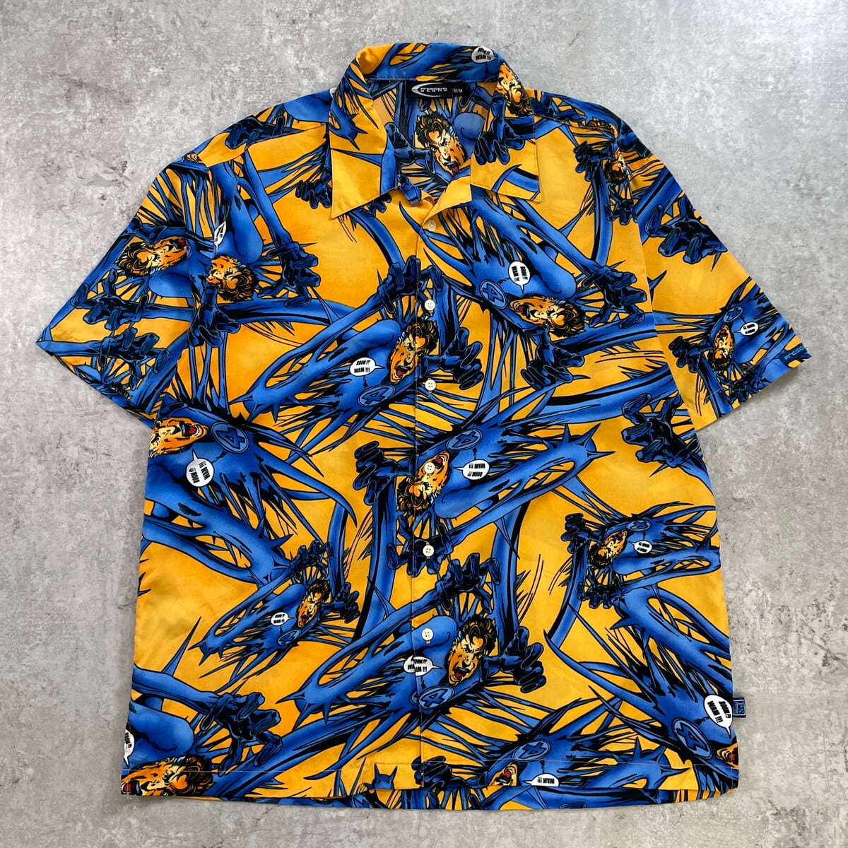 ■FANTASTIC FOUR ファンタスティック・フォー 総柄 半袖 ポリエステルシャツ メンズL相当 古着 MARVEL マーベル アメコミ コミック 【半袖シャツ】/マルチカラー