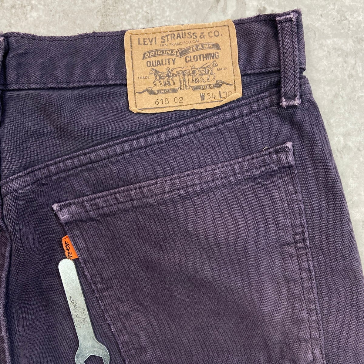90年代 英国製 Levi's ユーロリーバイス 618 02 カラーデニムパンツ テーパード メンズW34 古着 90s ヴィンテージ VINTAGE オレンジタブ アメカジ フェードパープル【デニムパンツ】/パープル