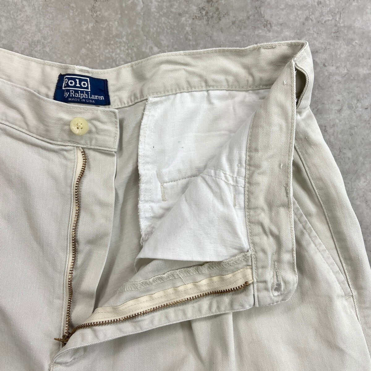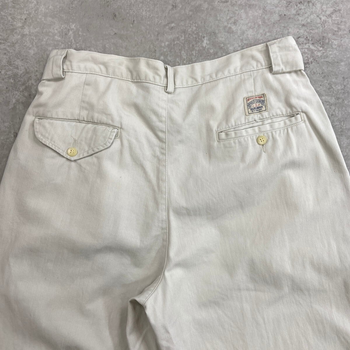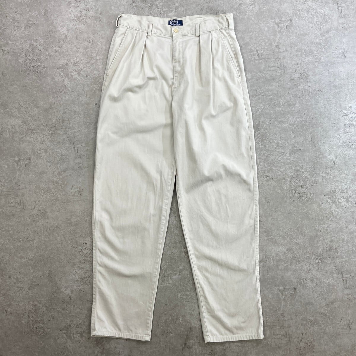 90年代 USA製 Polo by Ralph Lauren ポロバイラルフローレン 2タック チノパンツ メンズW32 古着 90s アメカジ VINTAGE ヴィンテージ ポロチノ ホワイトベージュ【チノパンツ,コットンパンツ】/ホワイト