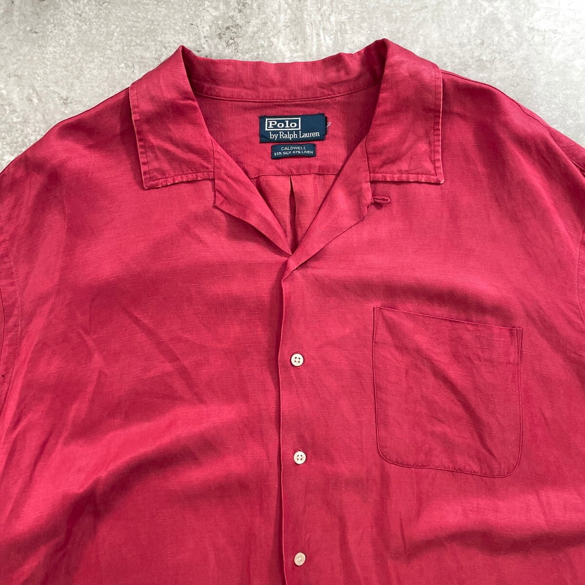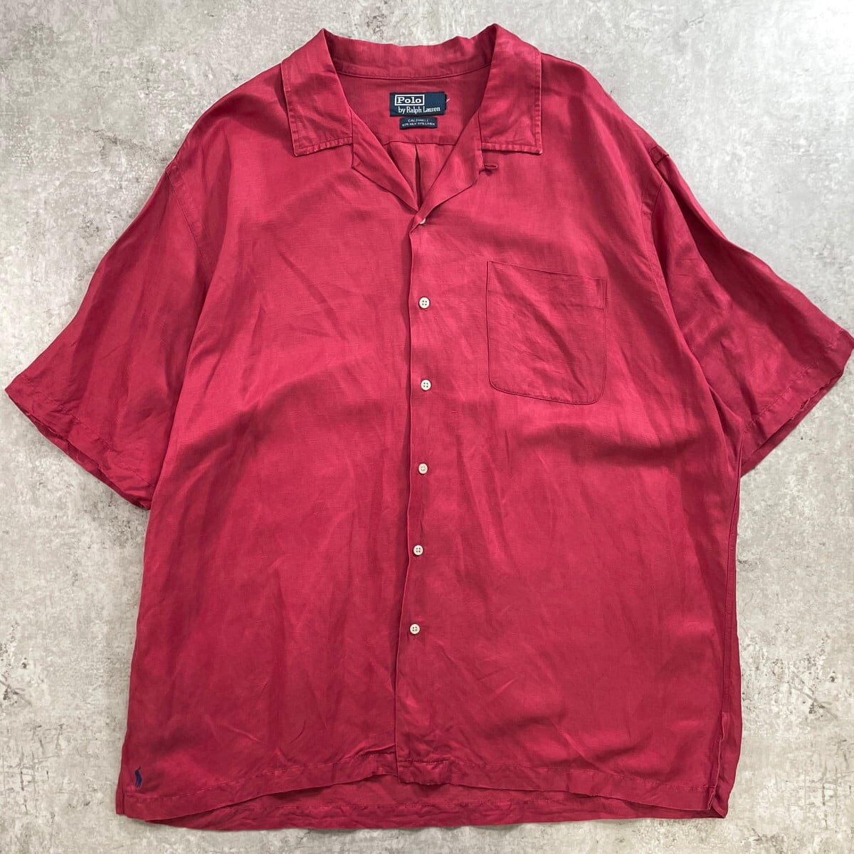 90年代 Polo by Ralph Lauren ポロバイラルフローレン CALDWELL オープンカラー 開襟 リネン×シルクシャツ メンズ2XL相当 古着 90s ヴィンテージ VINTAGE アメカジ 裾ポニー ビッグサイズ 大きいサイズ 赤【半袖シャツ】/レッド