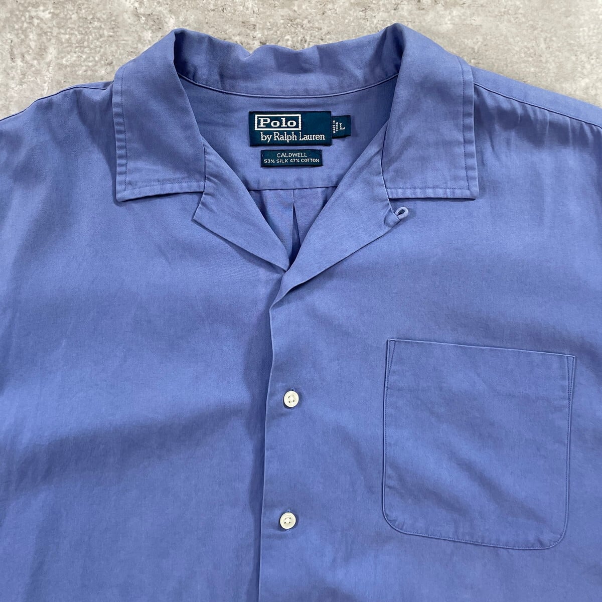 90年代 Polo by Ralph Lauren ポロバイラルフローレン CALDWELL オープンカラー 開襟 コットン×シルクシャツ メンズXL相当 古着 90s ヴィンテージ VINTAGE アメカジ ポニー無し パステルブルー【半袖シャツ】/ブルー