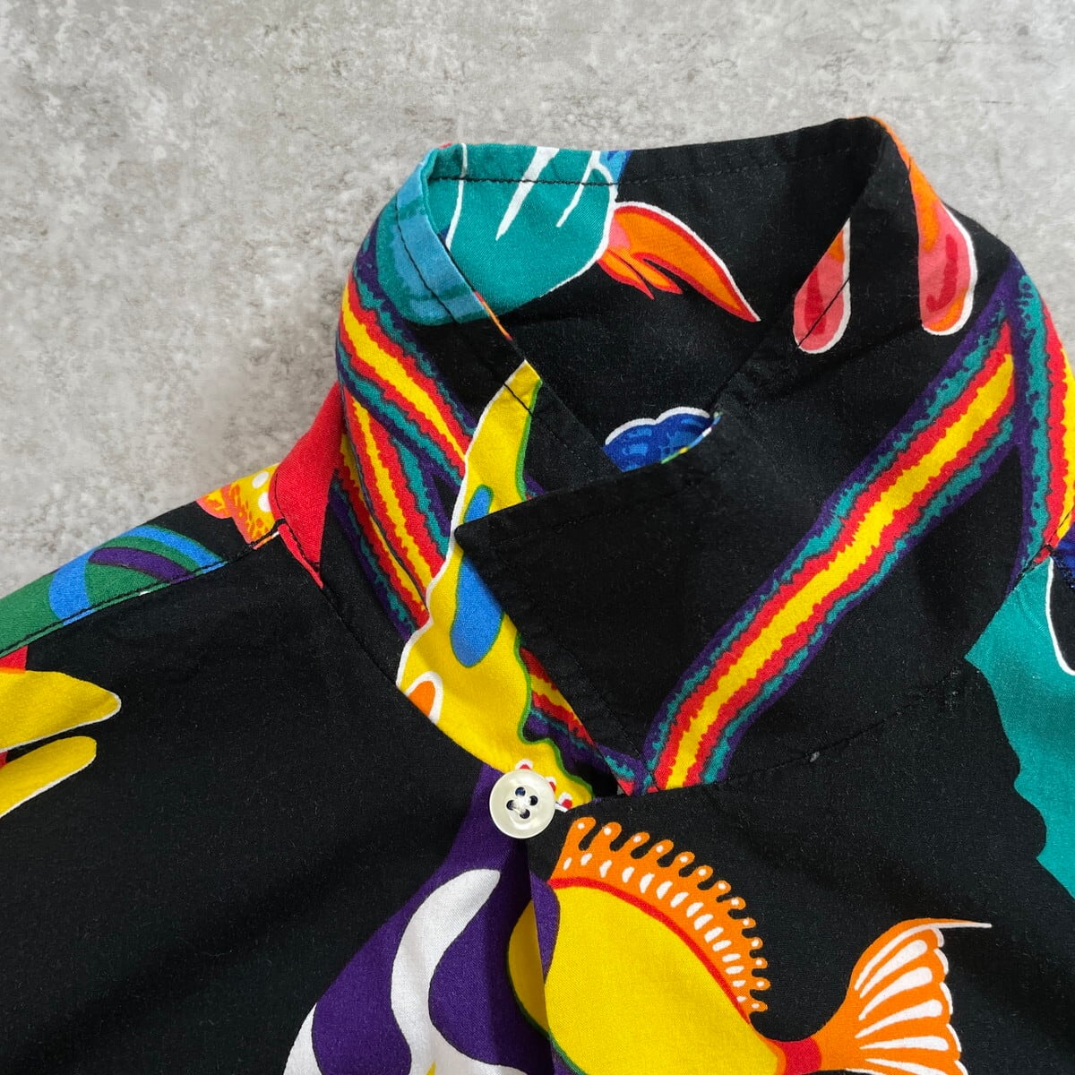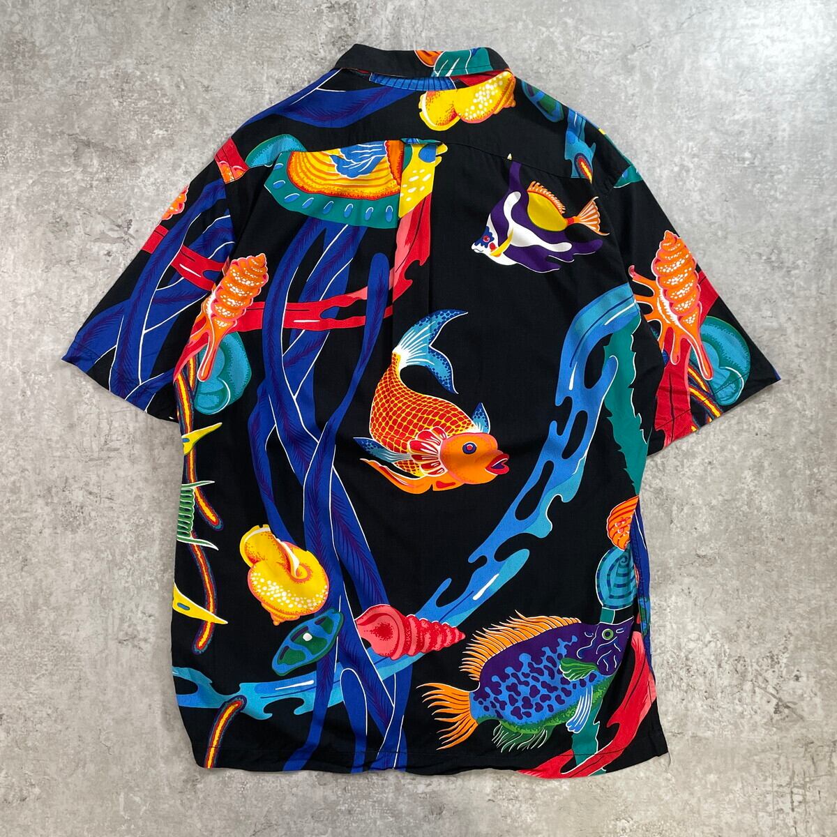 90年代 Polo by Ralph Lauren ポロバイラルフローレン CALDWELL 熱帯魚柄 オープンカラー 開襟 レーヨンシャツ メンズM-L相当 古着 90s ヴィンテージ VINTAGE アメカジ ポニー無し 総柄 ブラック 黒【半袖シャツ】/マルチカラー