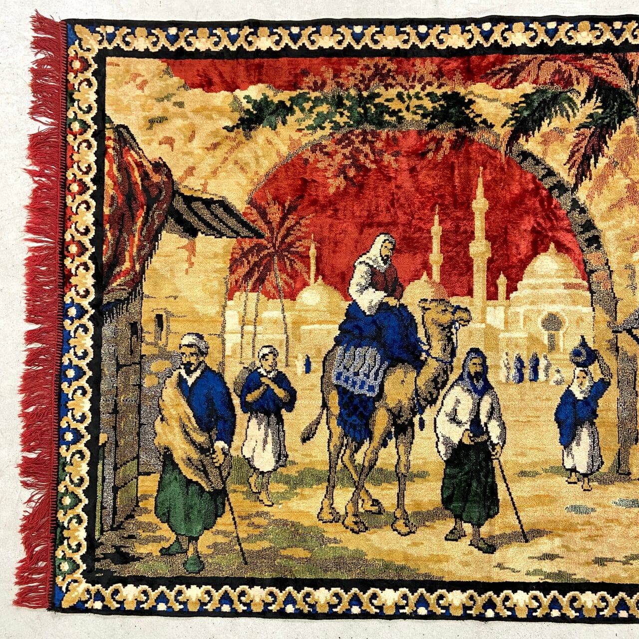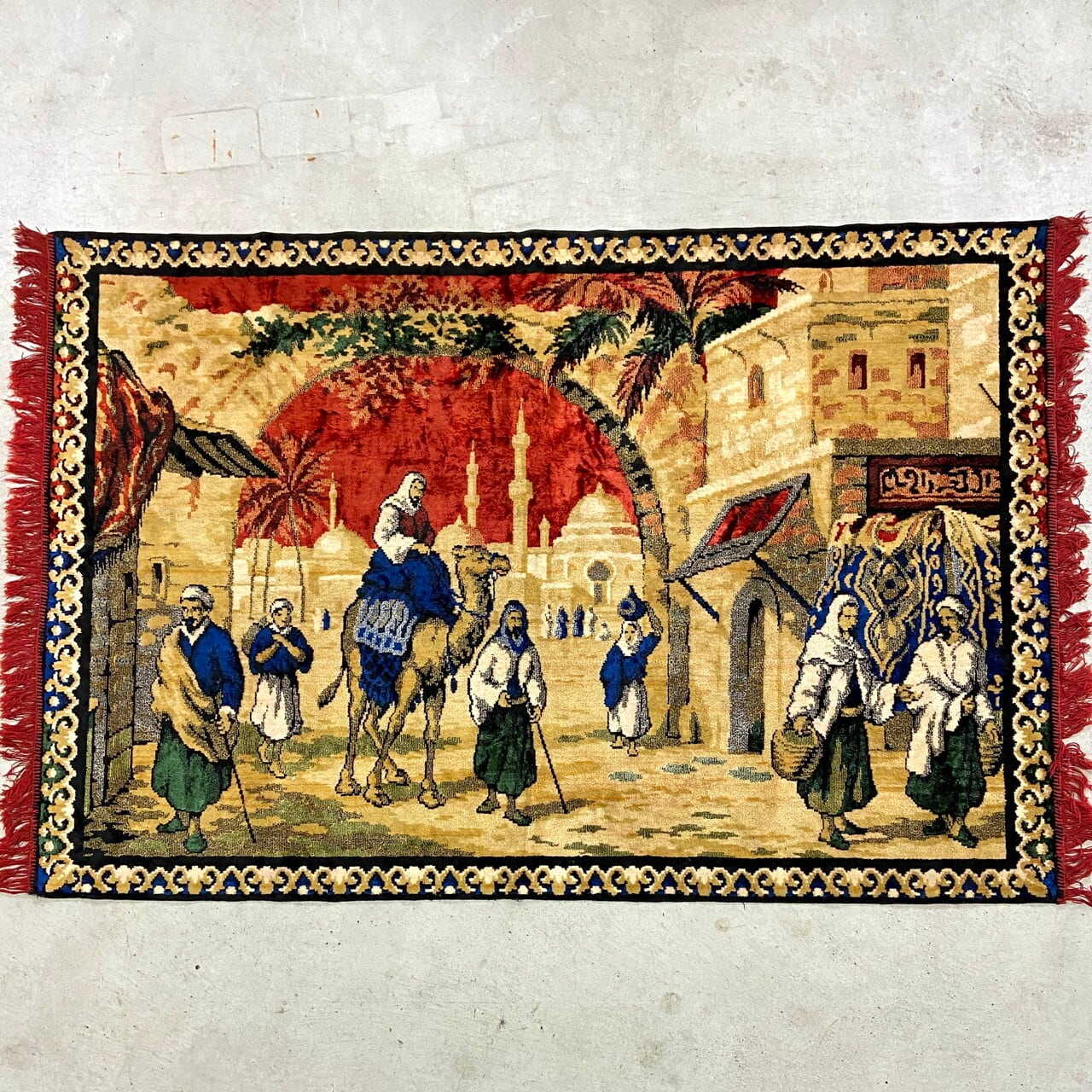 希少大判 70年代頃 ヴィンテージ ベルベット ラグ タペストリー「中東のバザールとラクダ」 198×125 インテリア 什器 VINTAGE ヴィンテージ ベロア【ラグ】 /マルチカラー