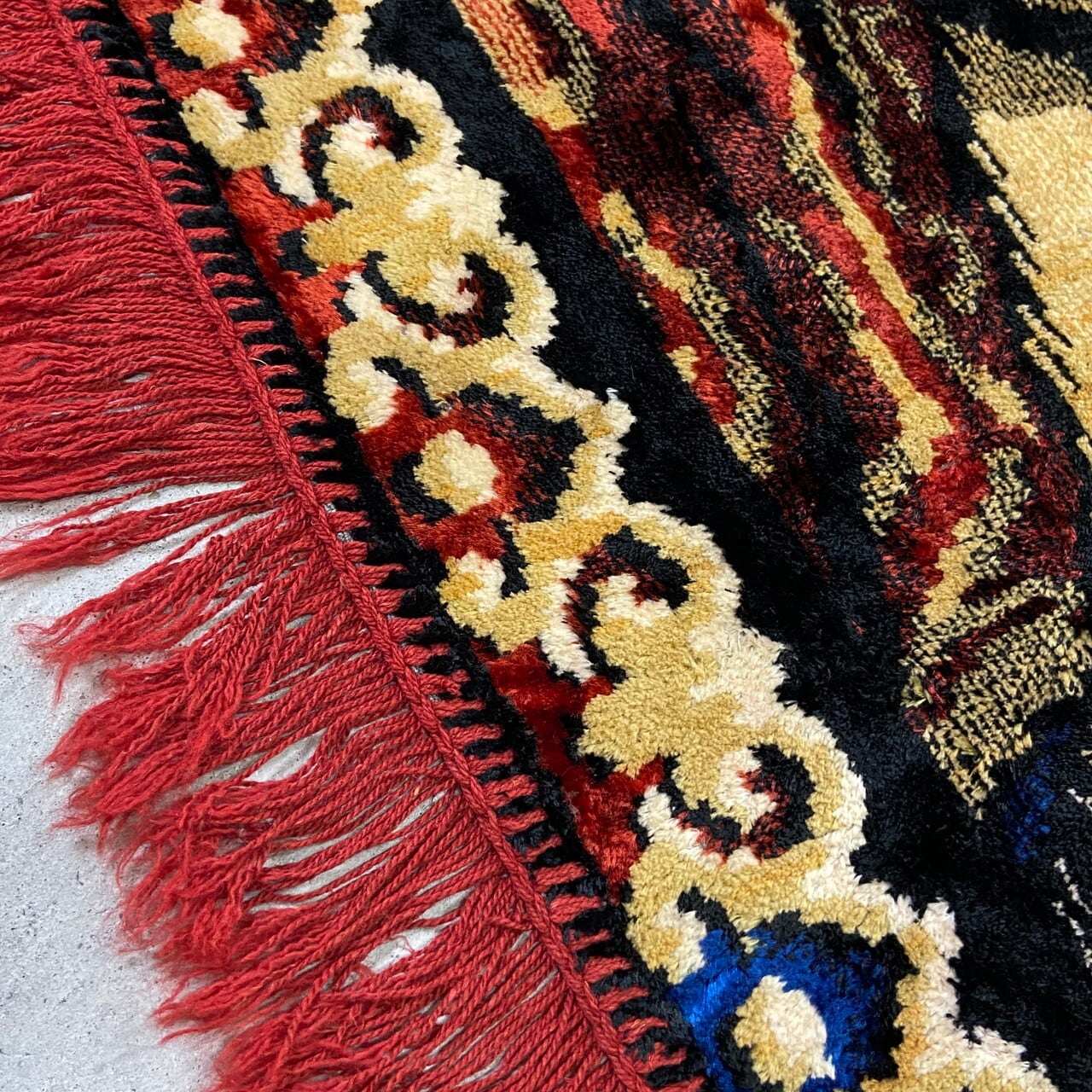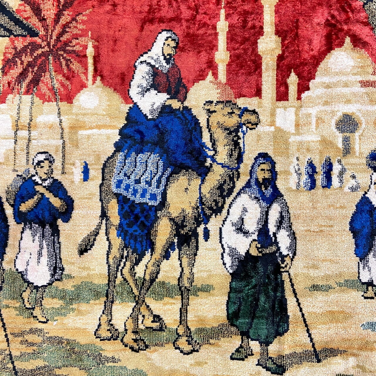 ■希少大判 70年代頃 ヴィンテージ ベルベット ラグ タペストリー「中東のバザールとラクダ」 198×125 インテリア 什器 VINTAGE ヴィンテージ ベロア【ラグ】 /マルチカラー