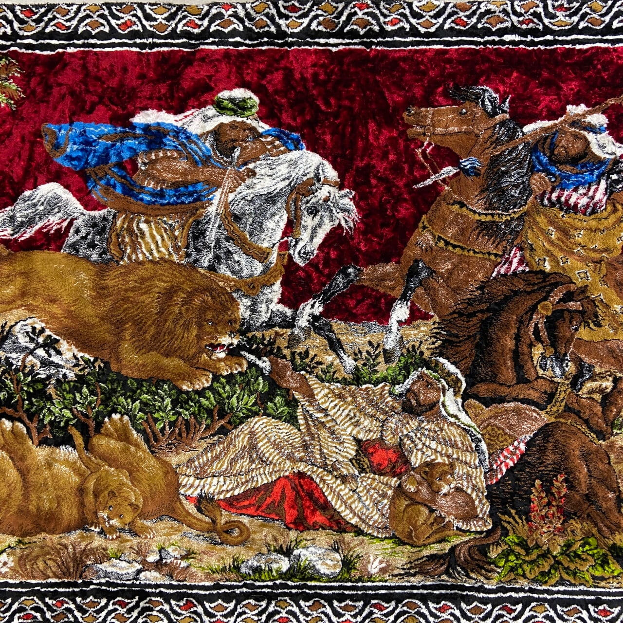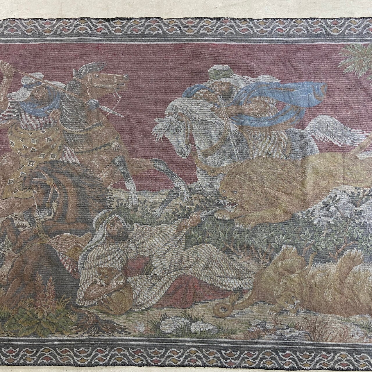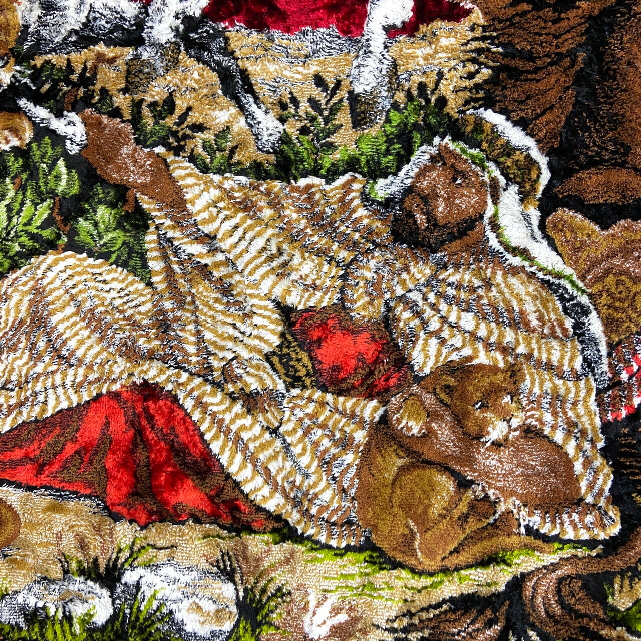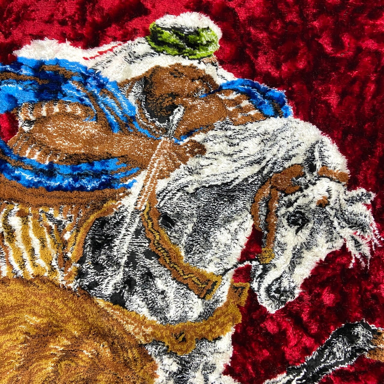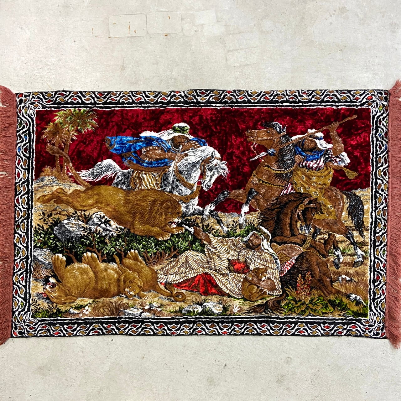 希少大判 70年代頃 ヴィンテージ ベルベット ラグ タペストリー「ライオン狩り」 195×120 インテリア 什器 VINTAGE ヴィンテージ ベロア【ラグ】 /マルチカラー