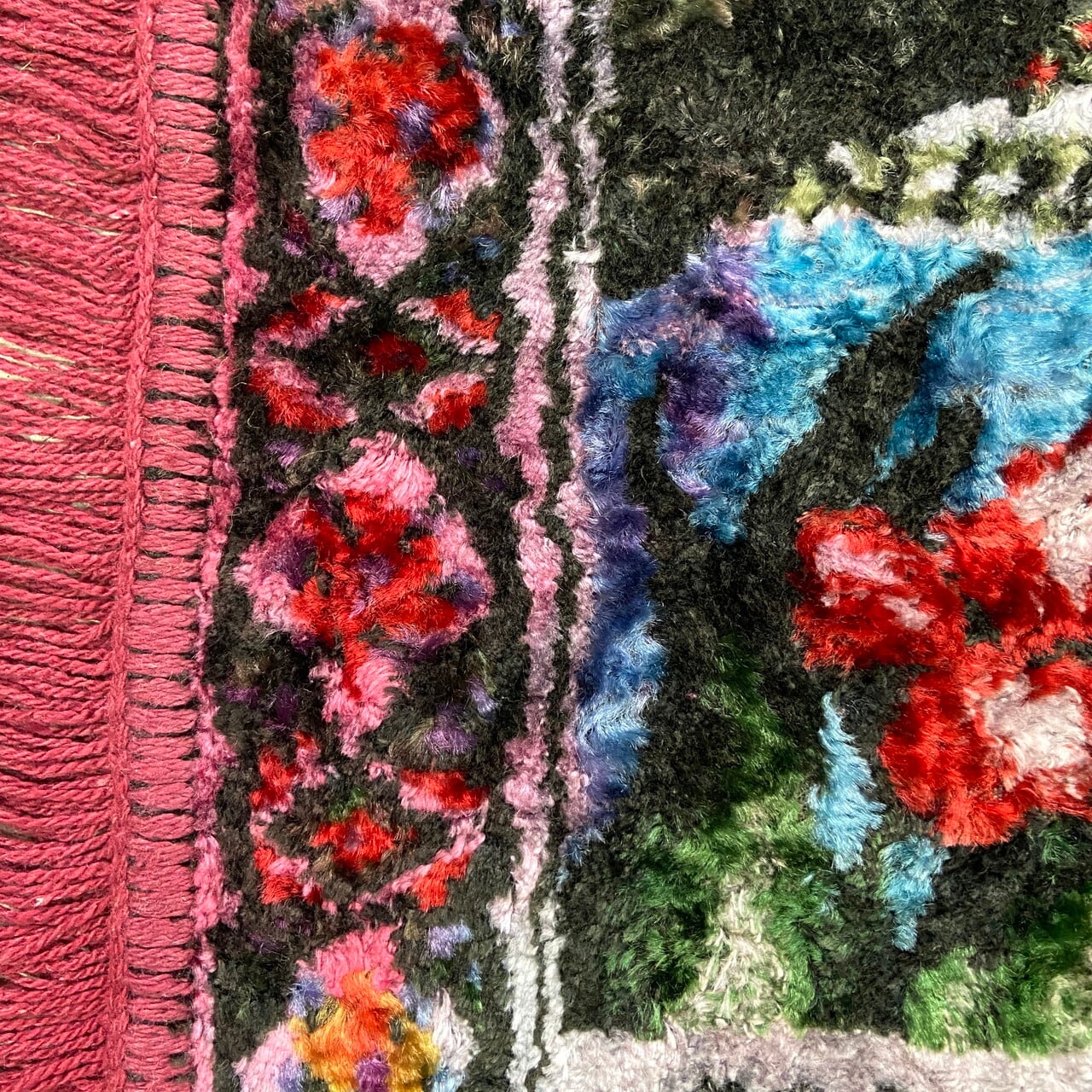 フリンジからの色移りが見られます。裏側にしている画像もお確かめください。