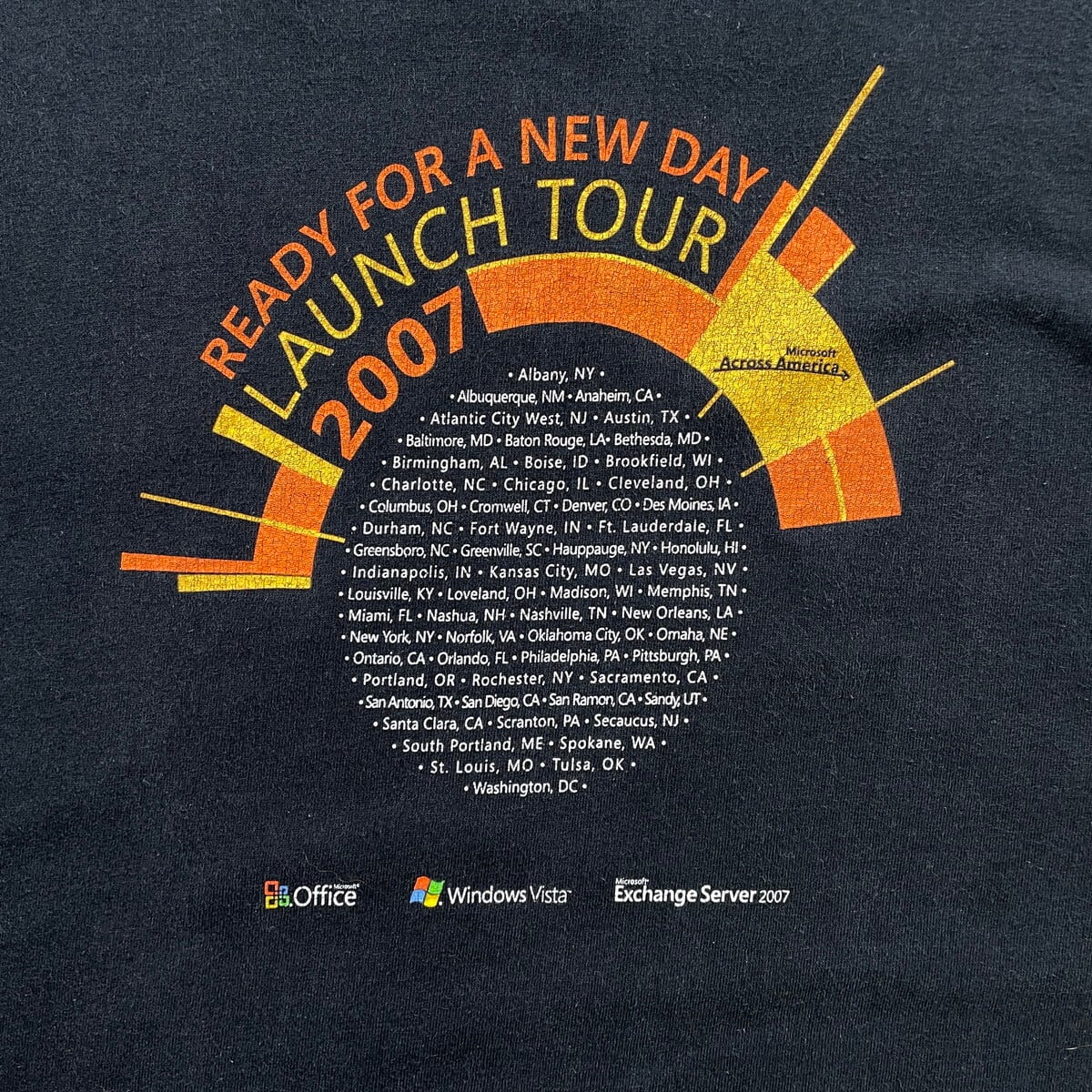 00年代 MICROSOFT WINDOWS 企業ロゴプリントTシャツ メンズXL 古着 00s Y2K ヴィンテージ VINTAGE READY FOR A NEW DAY LAUNCH TOUR アドバタイジング バックプリント 黒色【Tシャツ】/ブラック