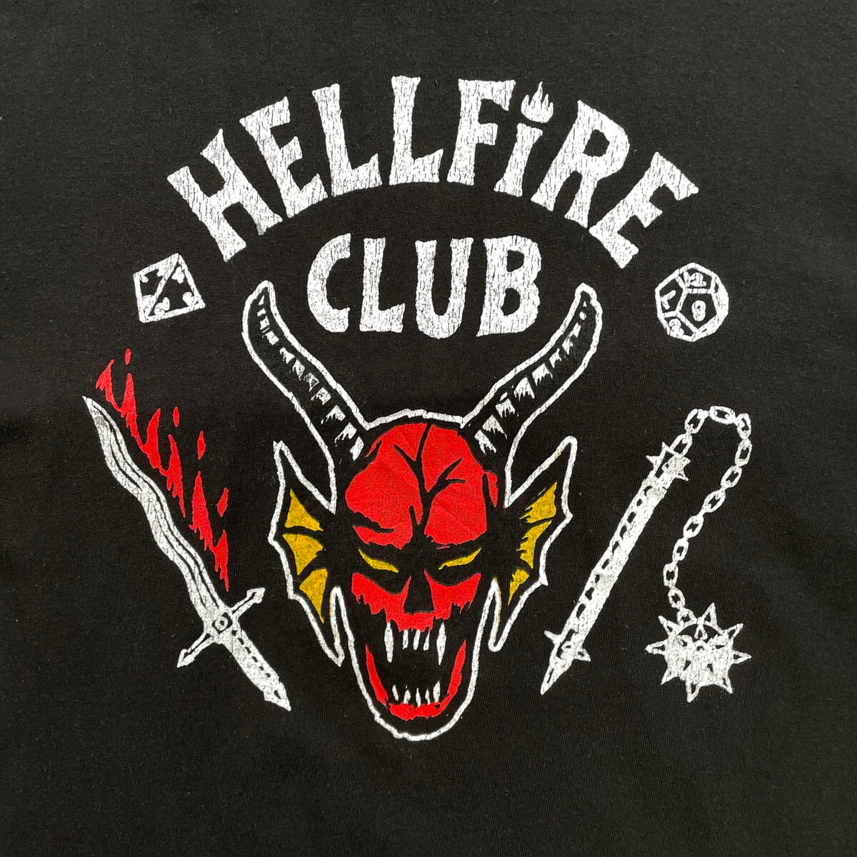 STRANGER THINGS ストレンジャーシングス HELLFiRE CLUB ムービーT 映画 プリントTシャツ メンズL 古着 ドラマ NETFLIX ネットフリックス 黒色【Tシャツ】/ブラック