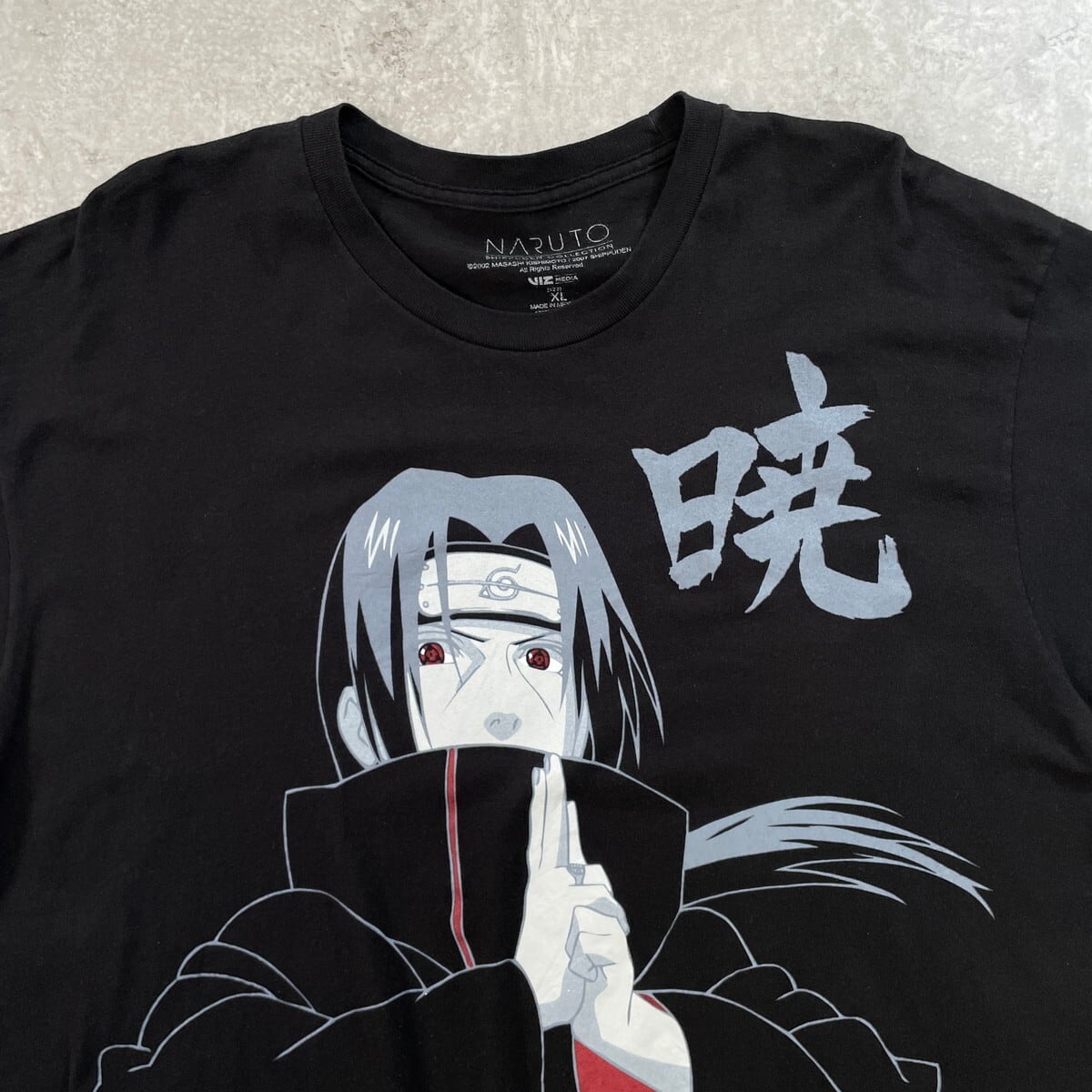 NARUTO 疾風伝 うちはイタチ 暁 アニメ キャラクタープリントTシャツ メンズXL 古着 漫画 黒【Tシャツ】/ブラック