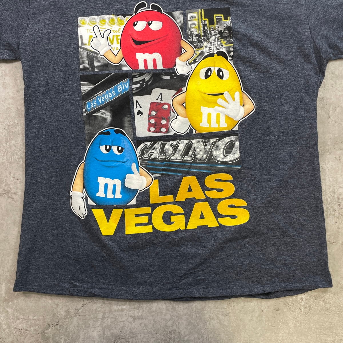 m&m's エムアンドエムズ キャラクタープリントTシャツ メンズL相当 古着 LAS VEGAS ラスベガス 紺色【Tシャツ】/ネイビー