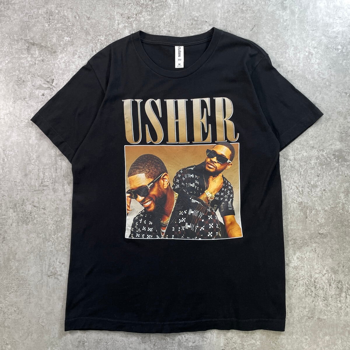 ■USHER アッシャー R&B アーティスト Tシャツ メンズM 古着 アメカジ バンドTシャツ バンT 黒色【Tシャツ】/ブラック