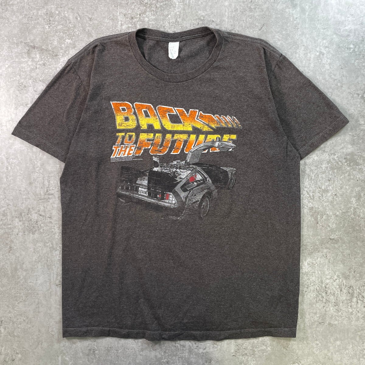 ■BACK TO THE FUTURE バックトゥザフューチャー 映画 ムービープリント Tシャツ メンズL相当 古着 デロリアン【Tシャツ】/グレー