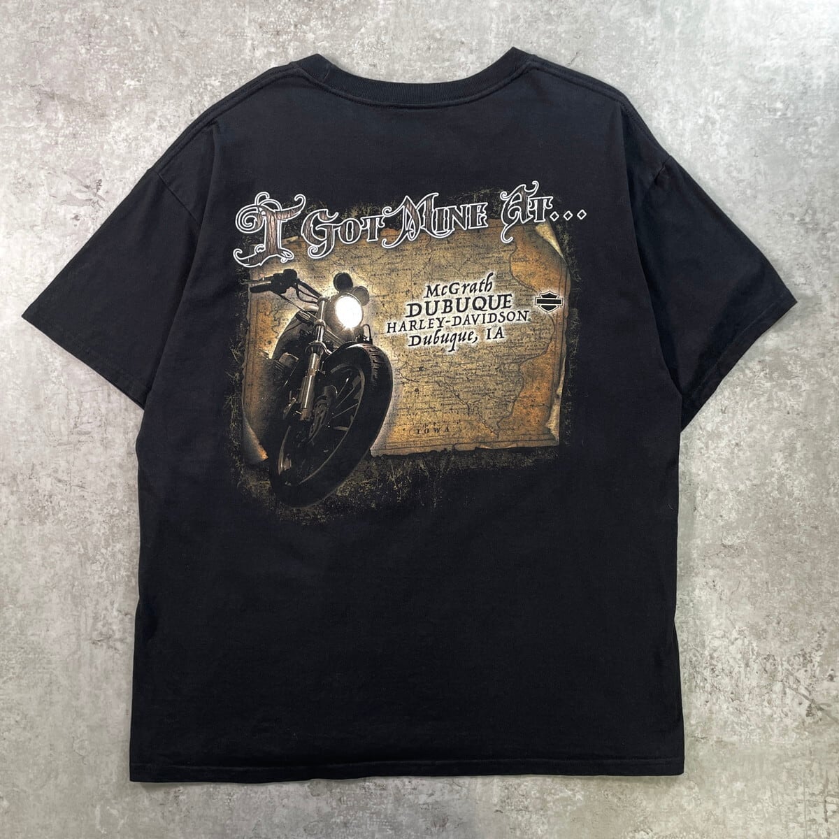 HARLEY DAVIDSON ハーレーダビッドソン バイカープリント Tシャツ メンズL 古着 アメカジ モーターサイクル バイク 企業 黒【Tシャツ】/ブラック