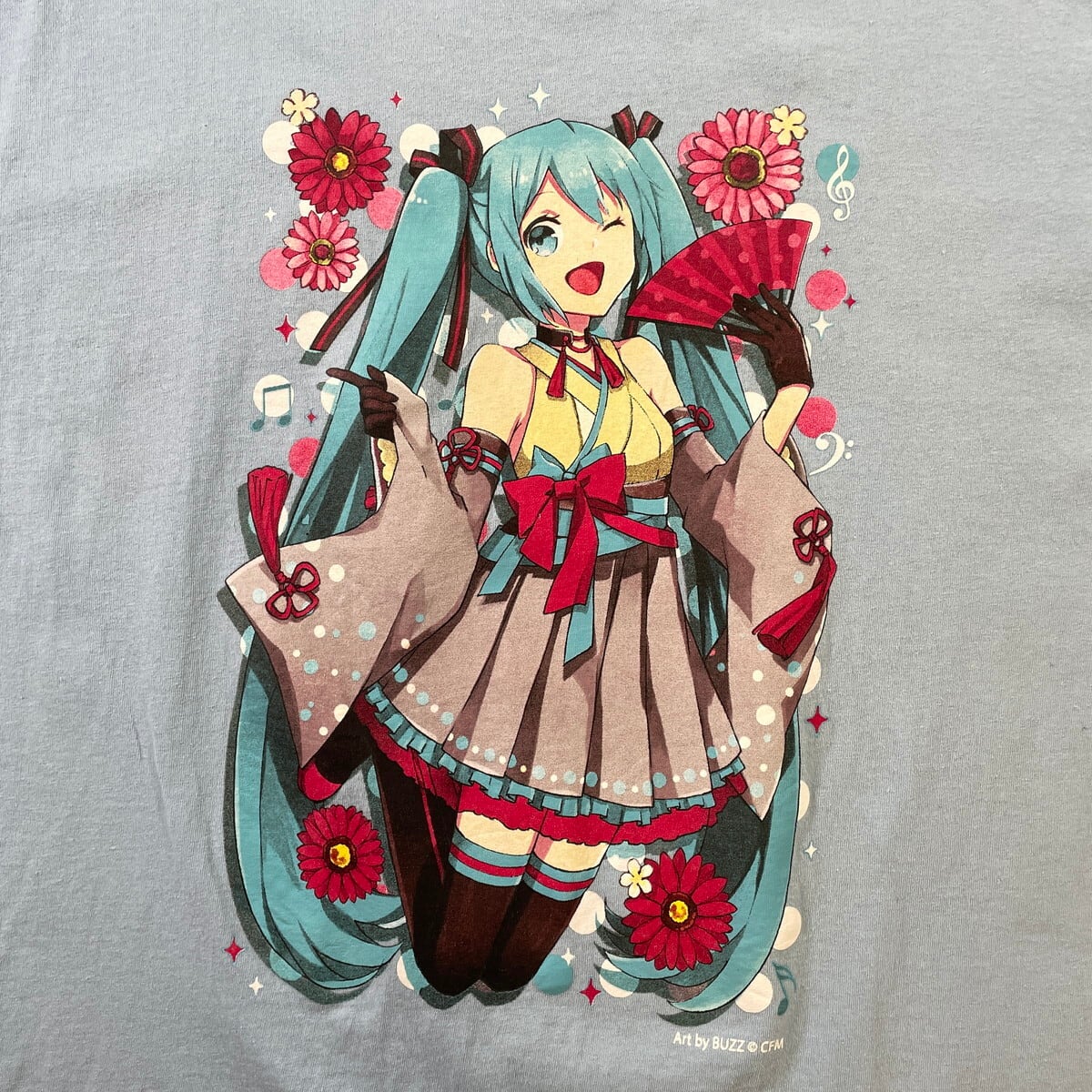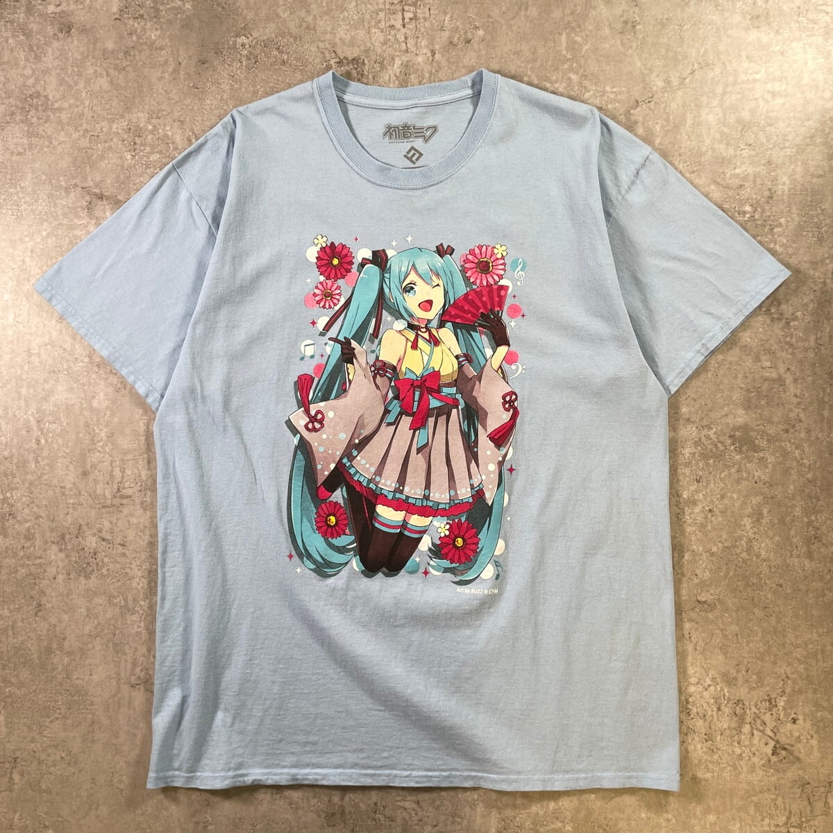 ■初音ミク キャラクタープリントTシャツ メンズXL 古着 ボーカロイド ボカロ ピアプロキャラクターズ アニメ ライトブルー 水色【Tシャツ】/ブルー