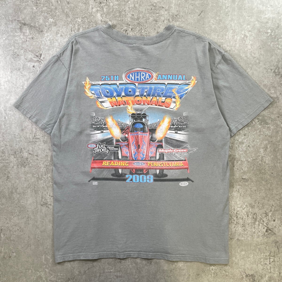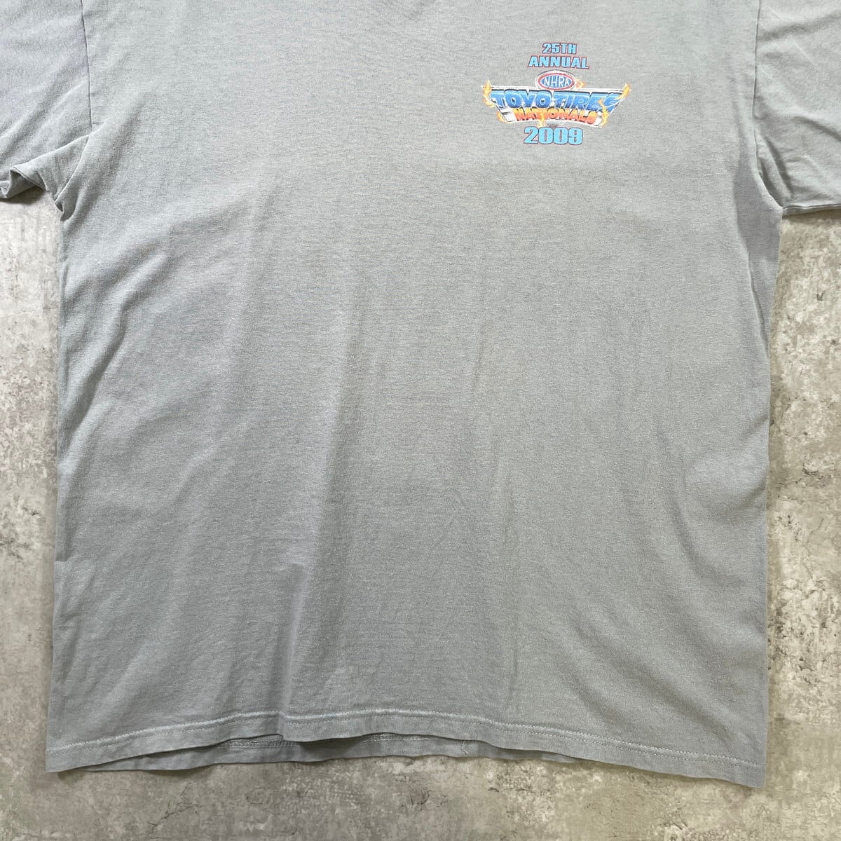 ■00年代 NHRA TOYOTIRES NATIONALS プリントTシャツ メンズL 古着 00s 2009 Y2K ヴィンテージ VINTAGE 車 バックプリント ライトグレー【Tシャツ】/グレー