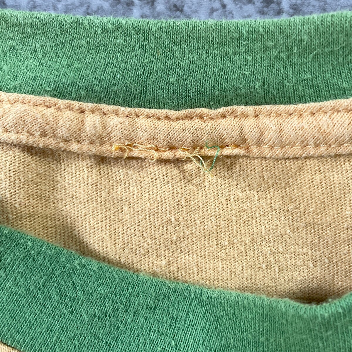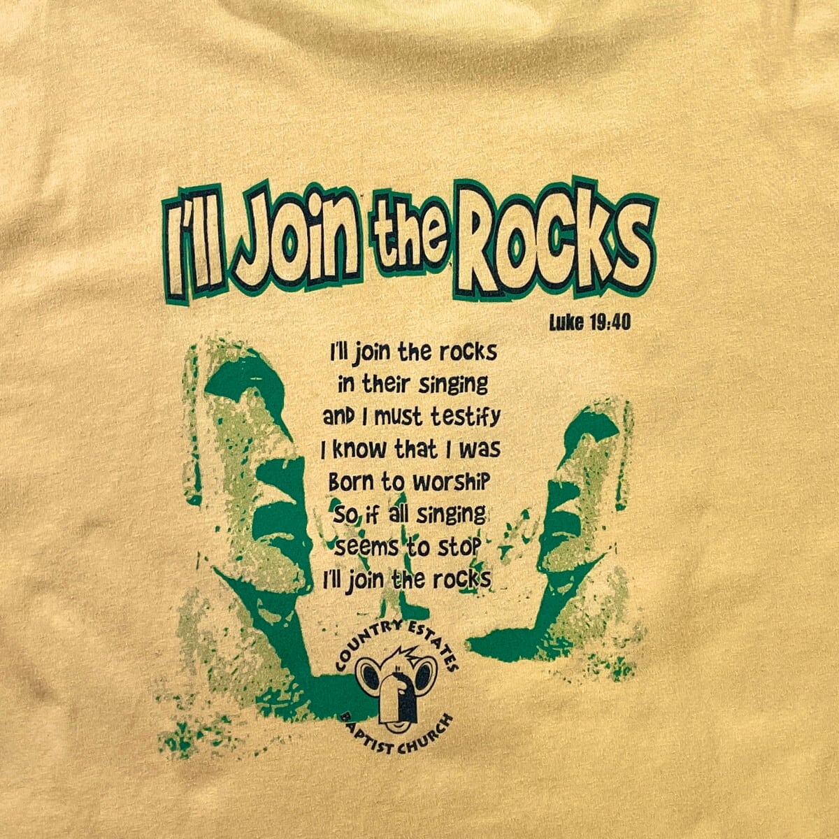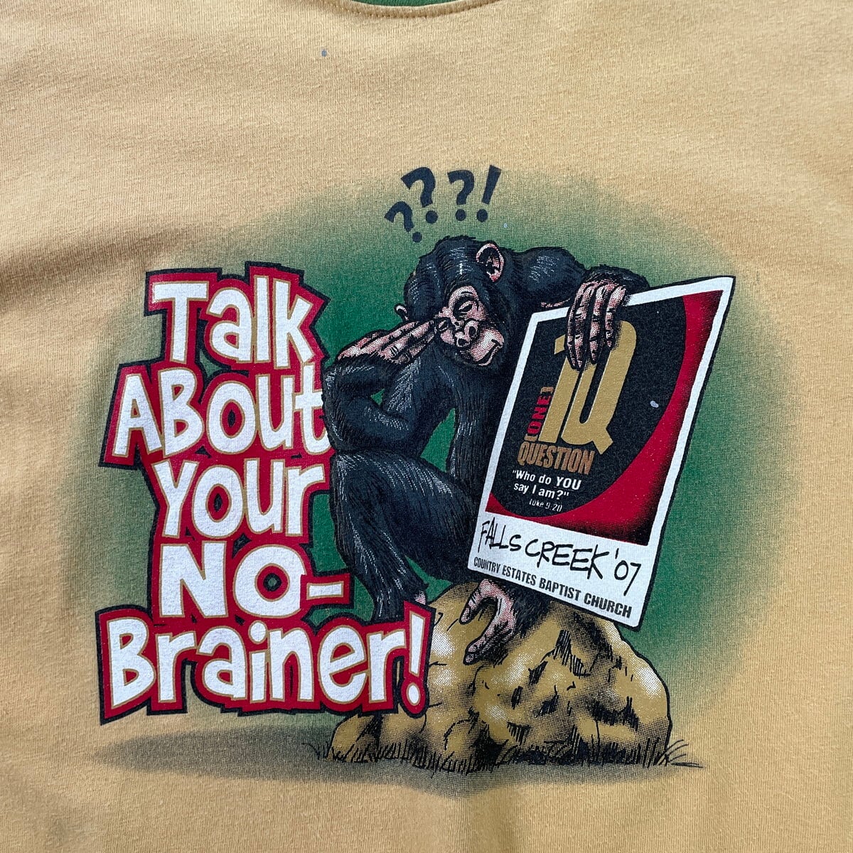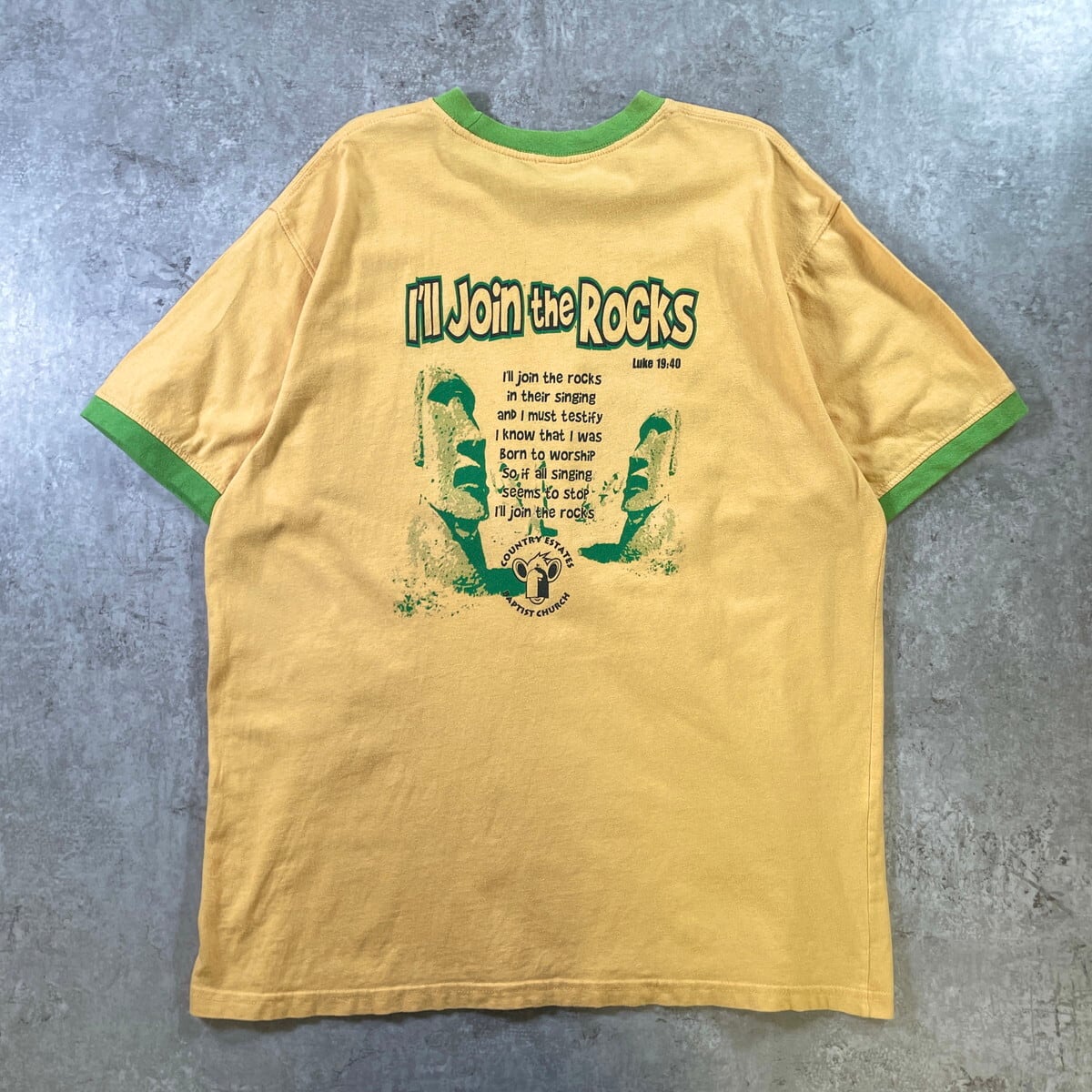 00年代 Country Estate Baptist Church リンガーTシャツ メンズL相当 古着 00s Y2K VINTAGE ヴィンテージ 教会 FALLS CREEK チンパンジー バックプリント グリーン【Tシャツ】/イエロー