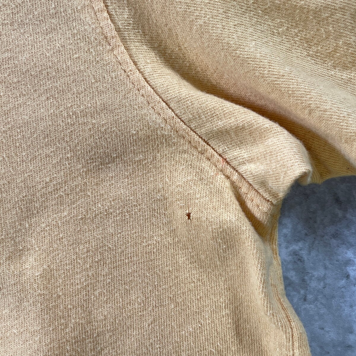 フロント首元付近に薄汚れ、左脇付近に小穴があります。