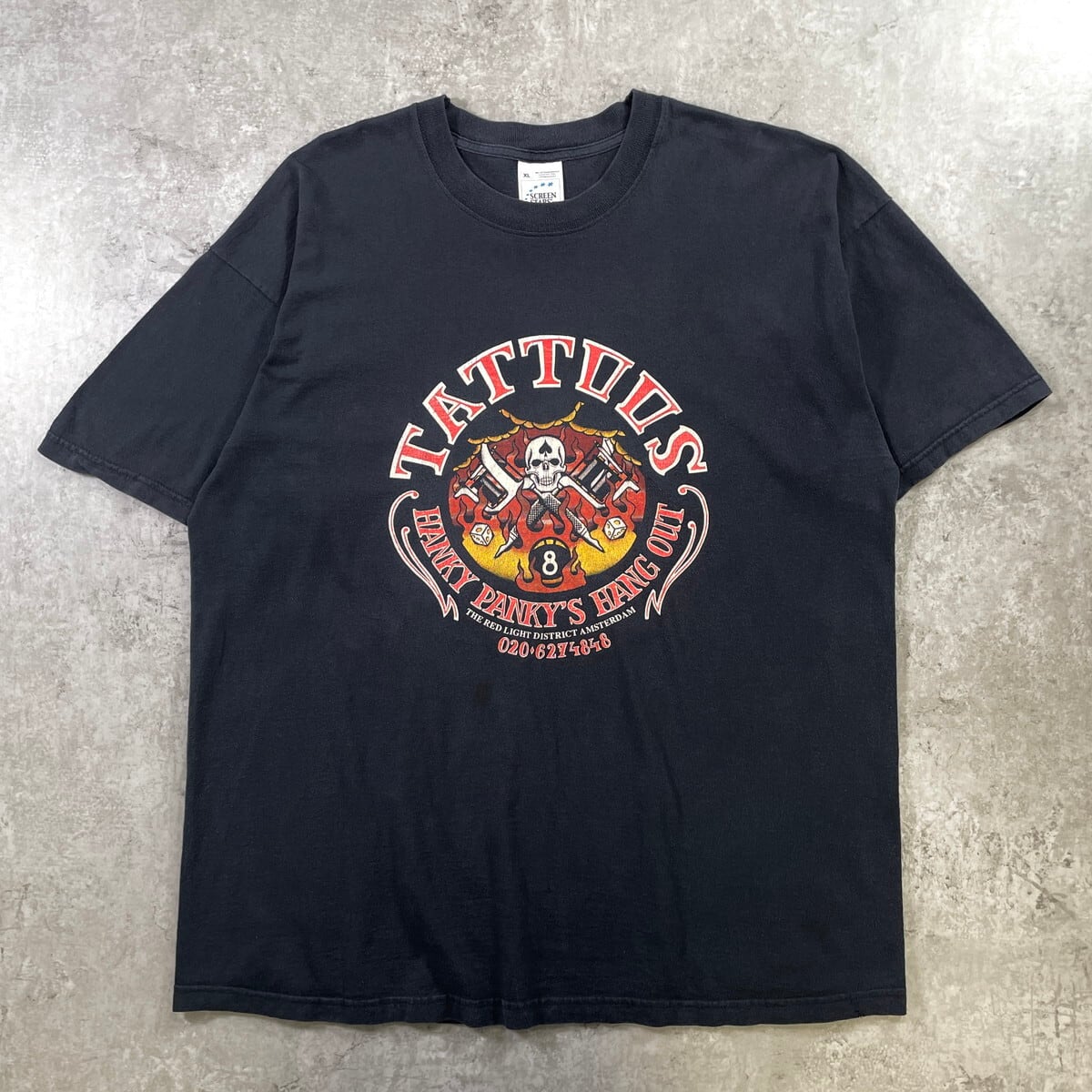 ■90年代 TATTOOS タトゥーショップ スカル プリントTシャツ メンズXL 古着 90s VINTAGE ヴィンテージ 企業 黒【Tシャツ】/ブラック