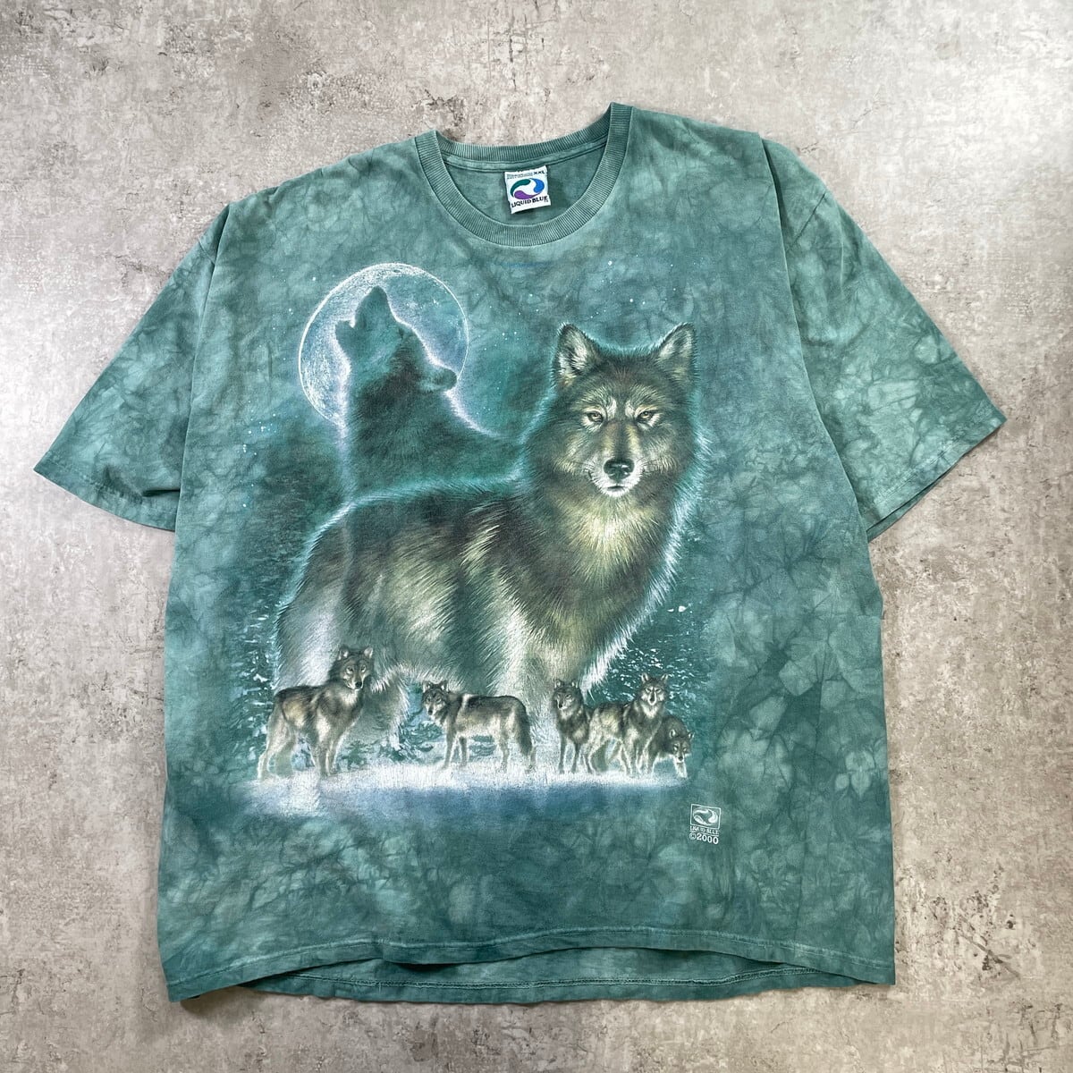 00年代 LIQUID BLUE リキッドブルー ウルフ オオカミ タイダイ アニマルプリントTシャツ メンズ2XL 古着 00s VINTAGE ヴィンテージ ビッグサイズ 大きいサイズ エメラルドグリーン 黄緑【Tシャツ】/グリーン