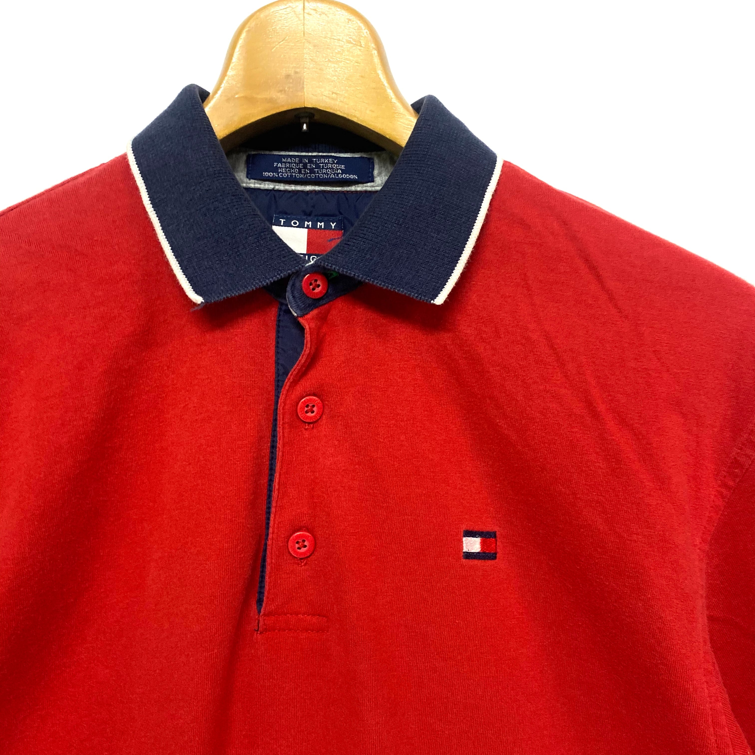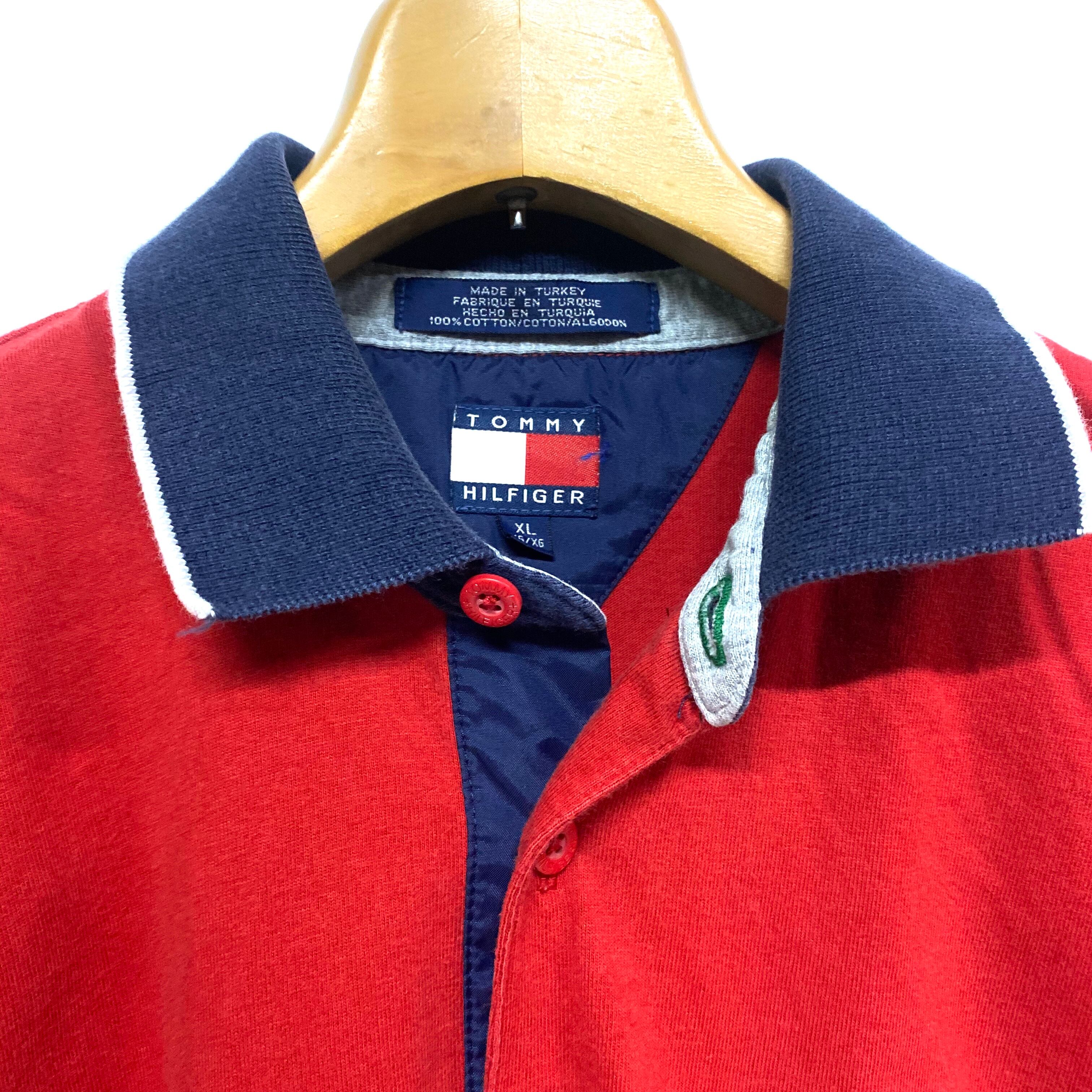 90年代 TOMMY HILFIGER トミーヒルフィガー ポロシャツ ライン入り レディースXL 古着 90s ヴィンテージ ビンテージ【ポロシャツ】【PD20】【AN20】