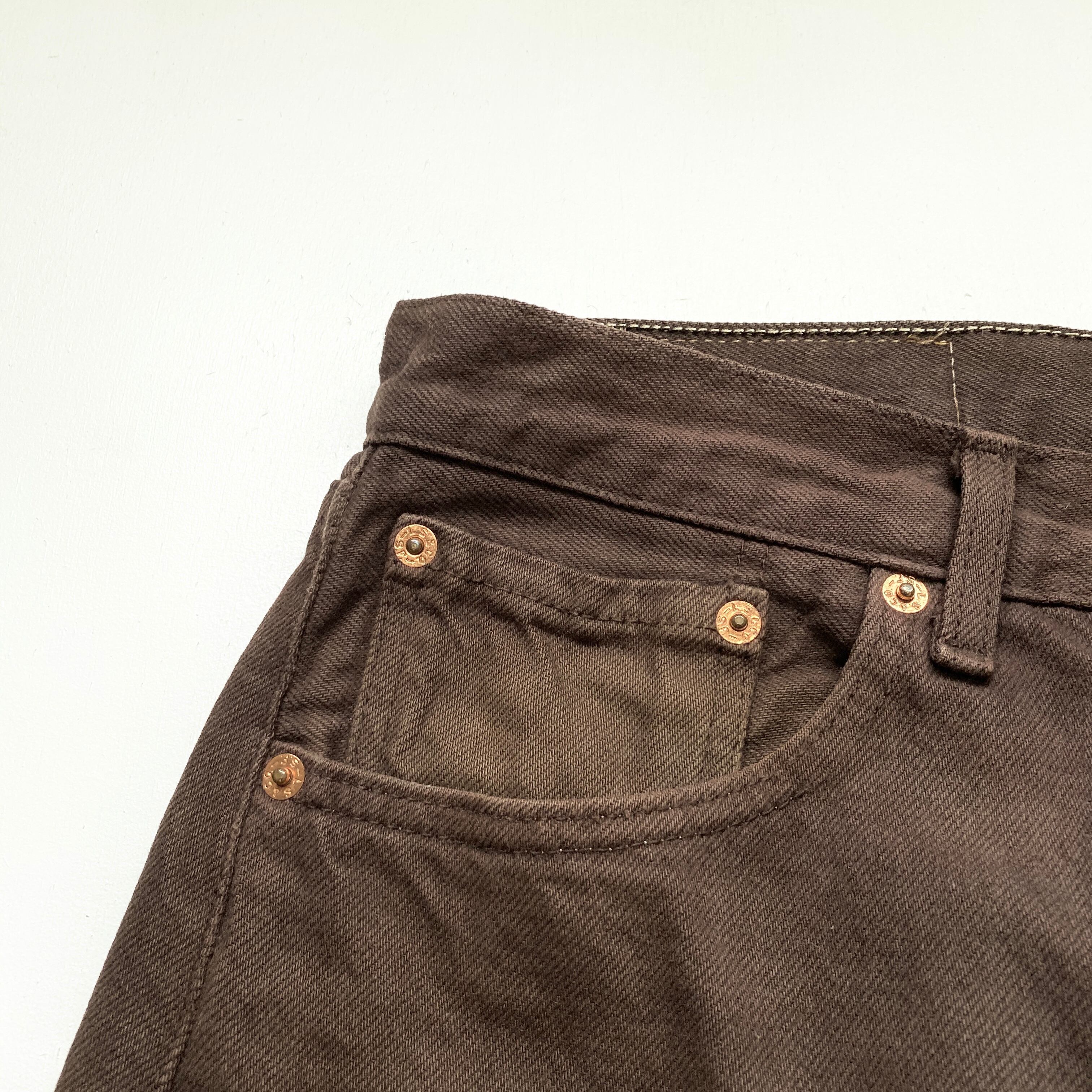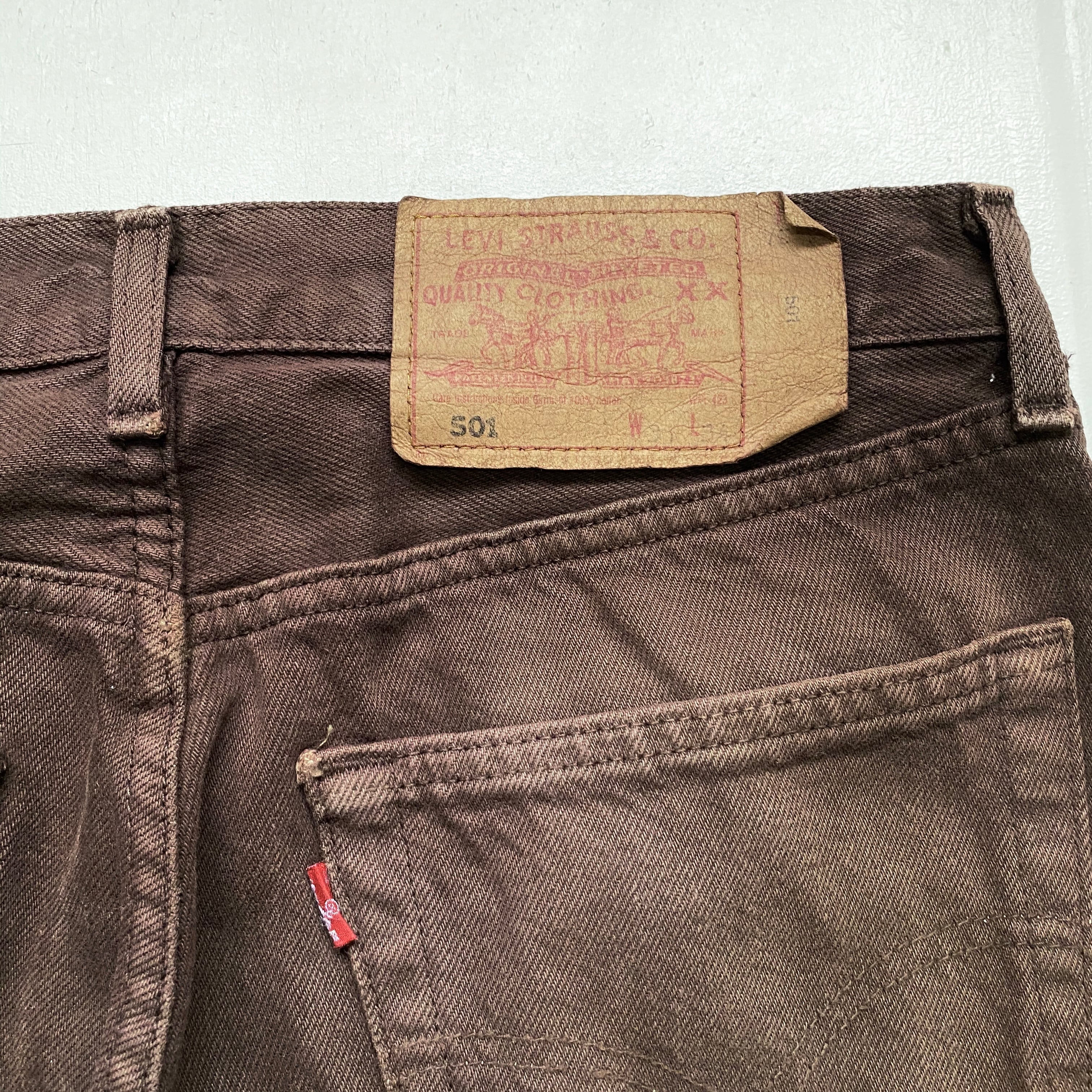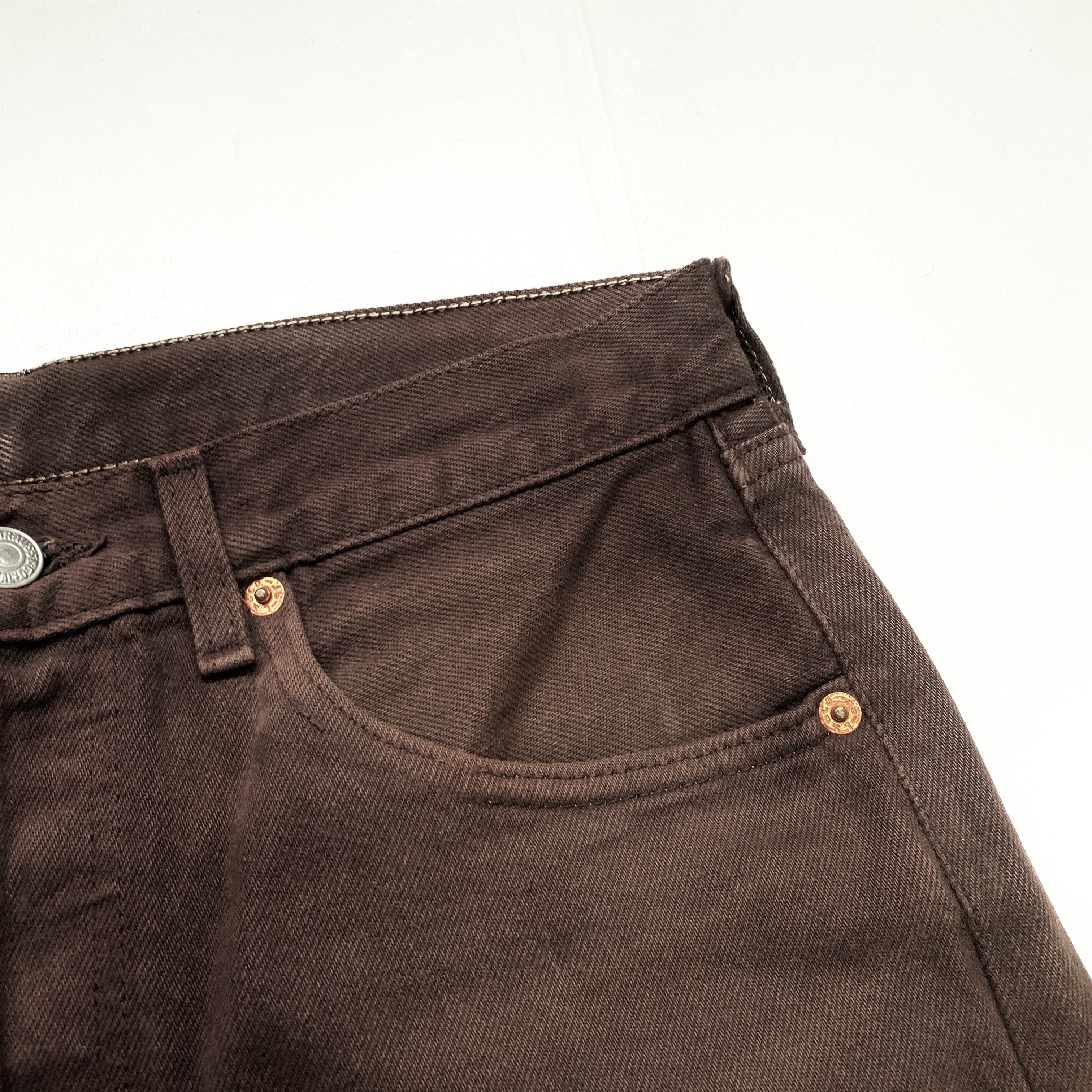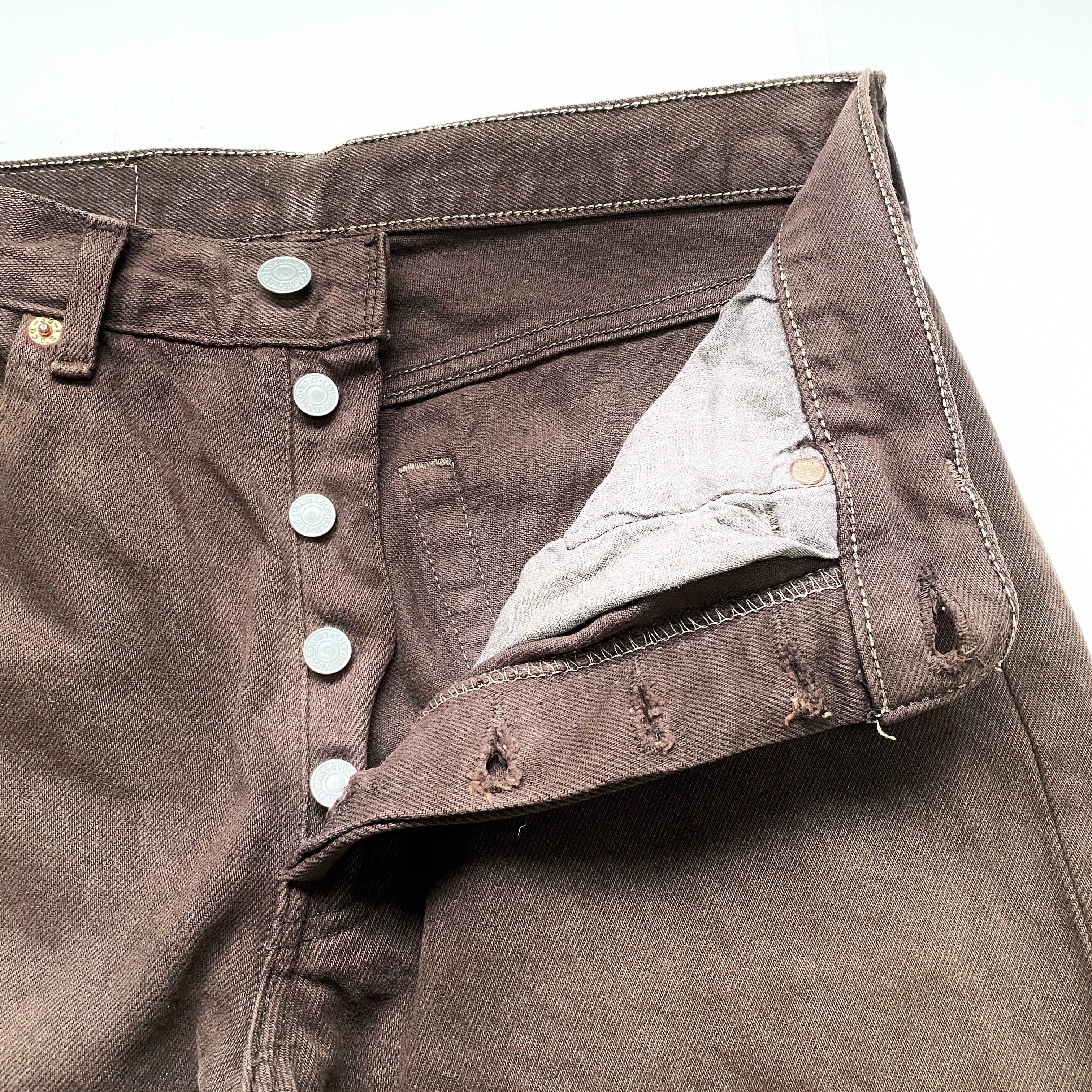90年代 90s フランス製 ユーロ Levi's リーバイス 501 ストレート カラー 後染め デニムパンツ ジーンズ ヴィンテージ ビンテージ ブラウン 茶色 メンズW31 古着【デニムパンツ】【VTG】