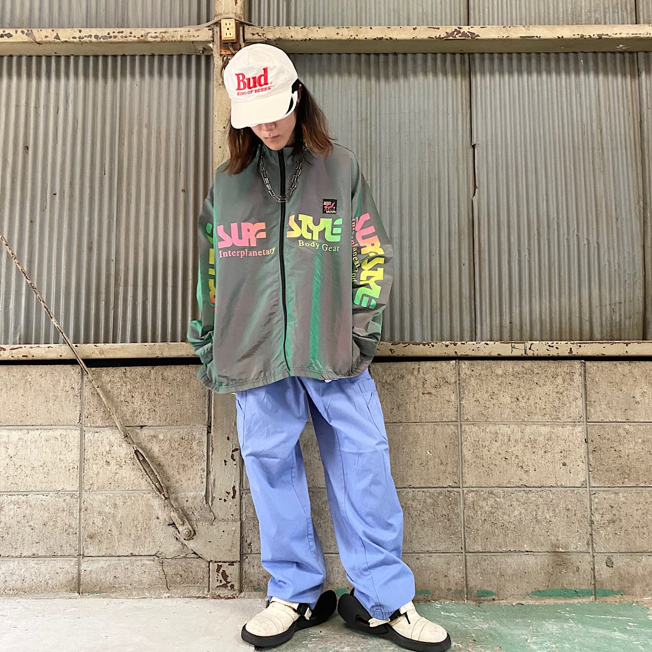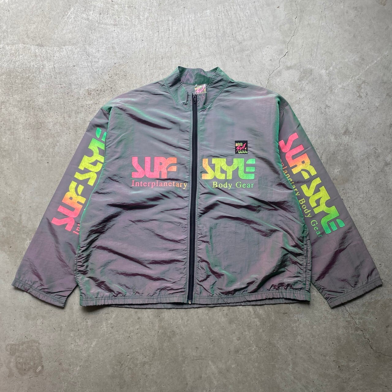 ビッグサイズ 80年代 80s SURF STYLE サーフスタイル ロゴプリント ナイロンジャケット ウインドブレーカー 玉虫色 ヴィンテージ ビンテージ 大きいサイズ メンズXXL相当 古着 【ナイロンジャケット】