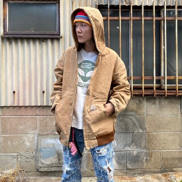 USA製 Carhartt カーハート アクティブジャケット ダック地 フルジップパーカー アクティブパーカー メッシュライナー ベージュ メンズXL 古着【ワークジャケット】