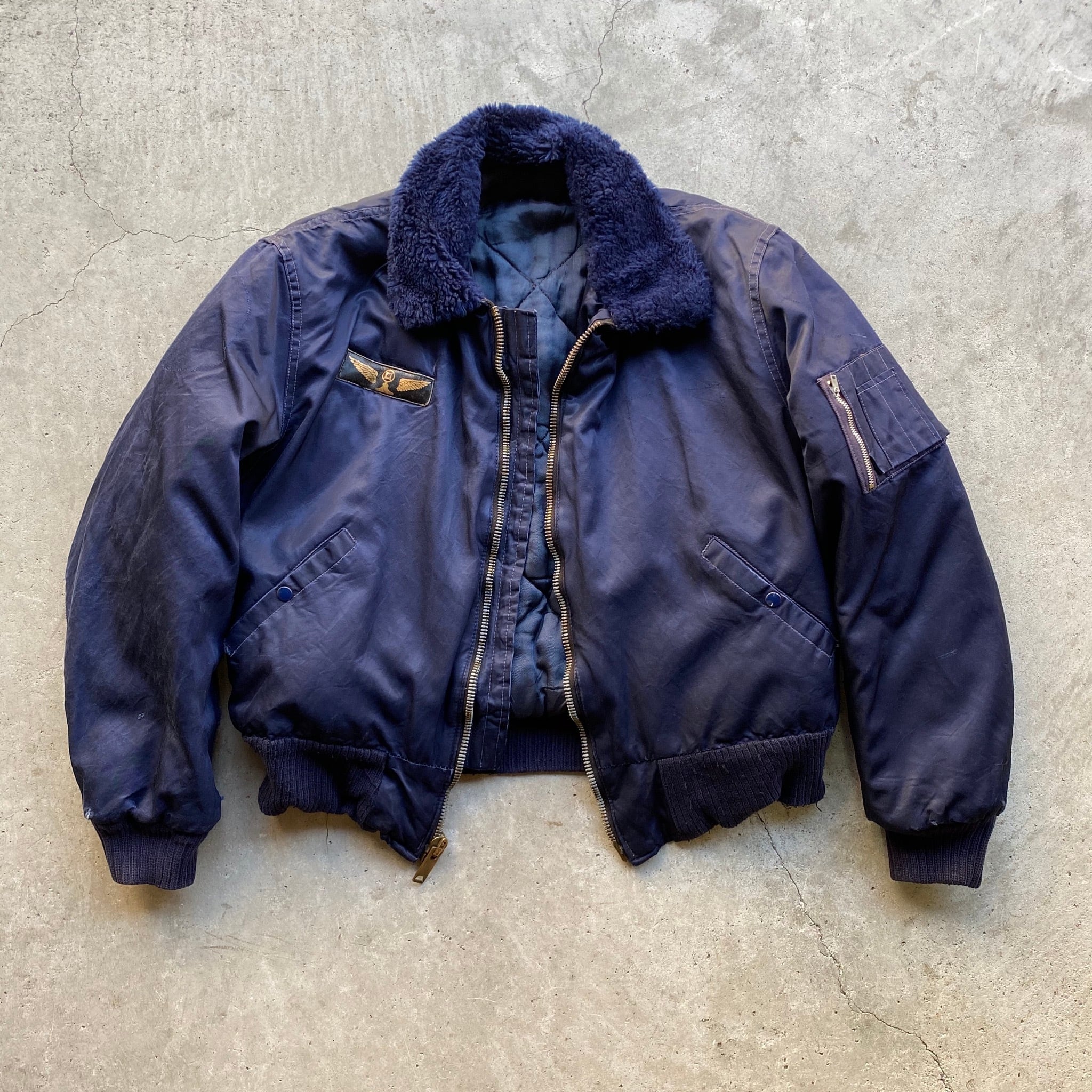 60〜70年代 ビンテージ 民間品 B-15タイプ ミリタリー フライトジャケット 60s 70s ヴィンテージ メンズM相当 エアフォースブルー ネイビー 紺色 古着 【ミリタリージャケット】