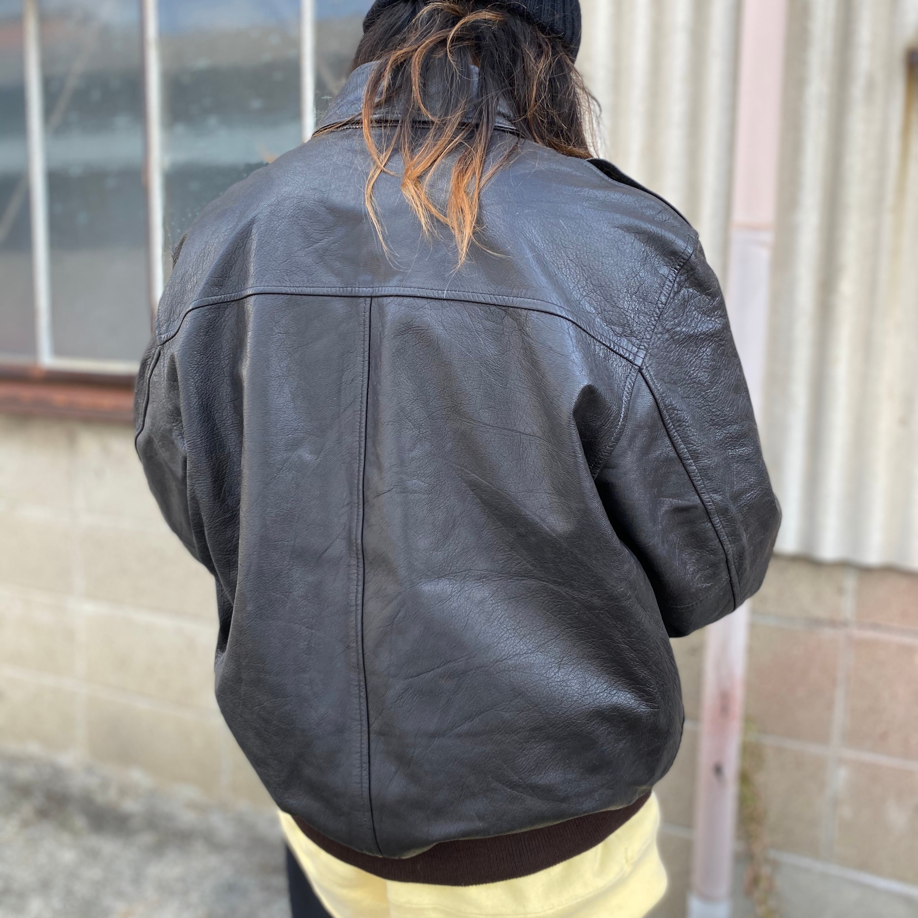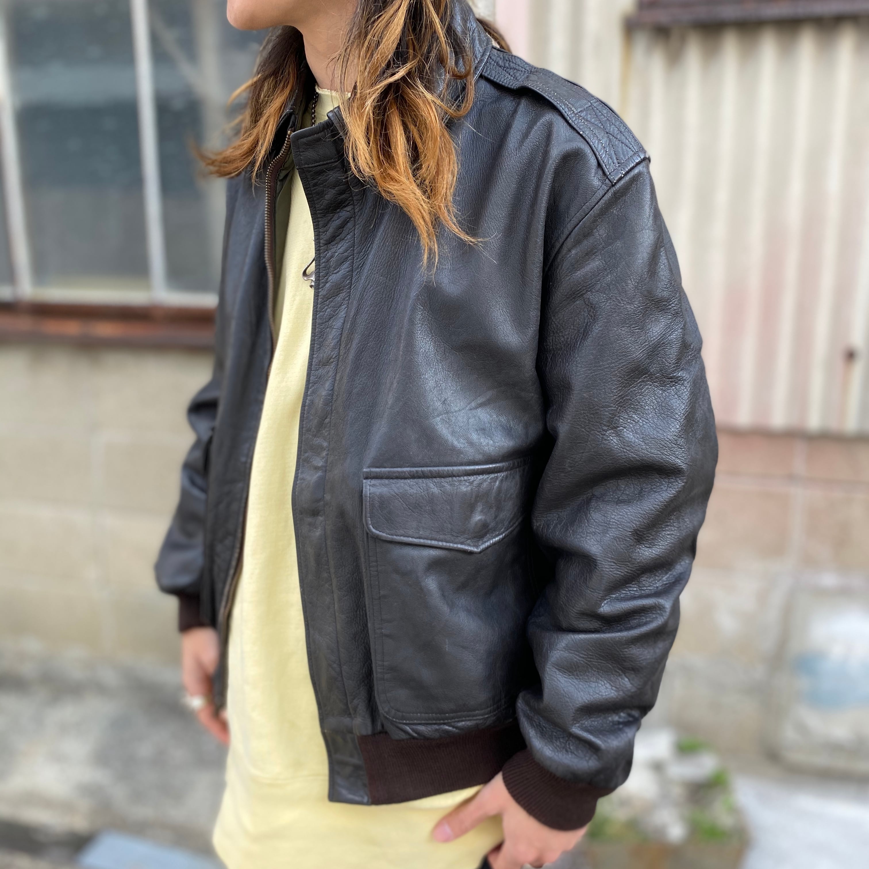 80年代 ビンテージ USA製 L.L.Bean エルエルビーン A-2タイプ ミリタリー フライトジャケット レザージャケット 革ジャン メンズM相当 80s ヴィンテージ ブラウン 茶色 古着 【ミリタリージャケット】