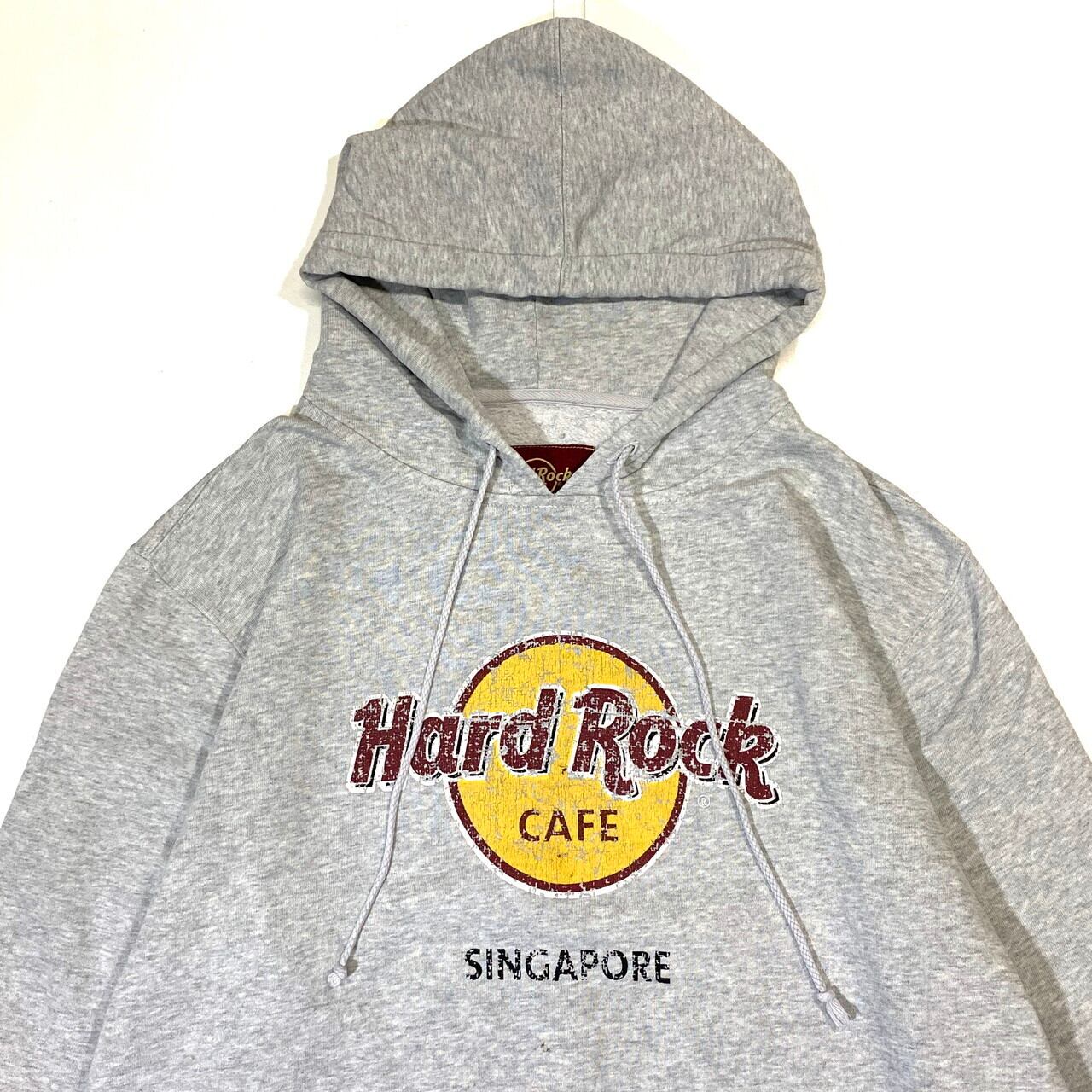 ■Hard Rock CAFE SINGAPORE ハードロックカフェ ロゴ プルオーバー スウェットパーカー ライトグレー メンズL 古着
