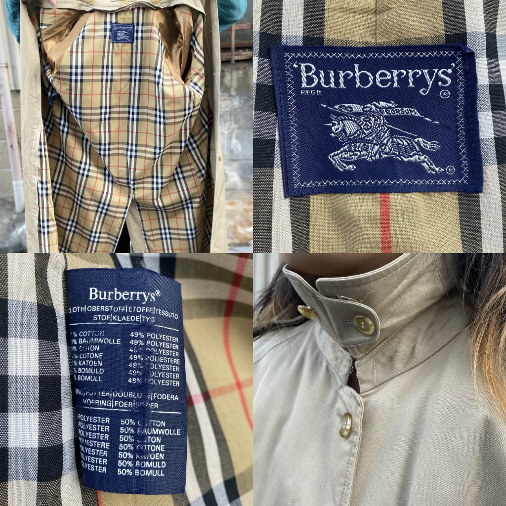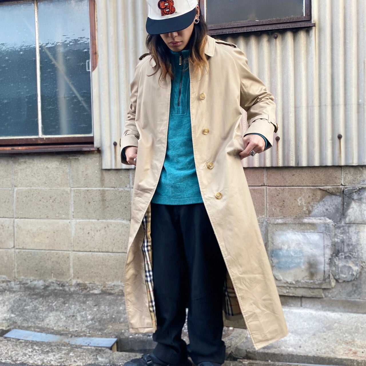 ビンテージ 英国製 Burberry's バーバリー ステンカラーコート バルマカーンコート レディースL相当 メンズM相当 古着 マキシ丈 ヴィンテージ 裏地バーバリーチェック ベージュ【コート】