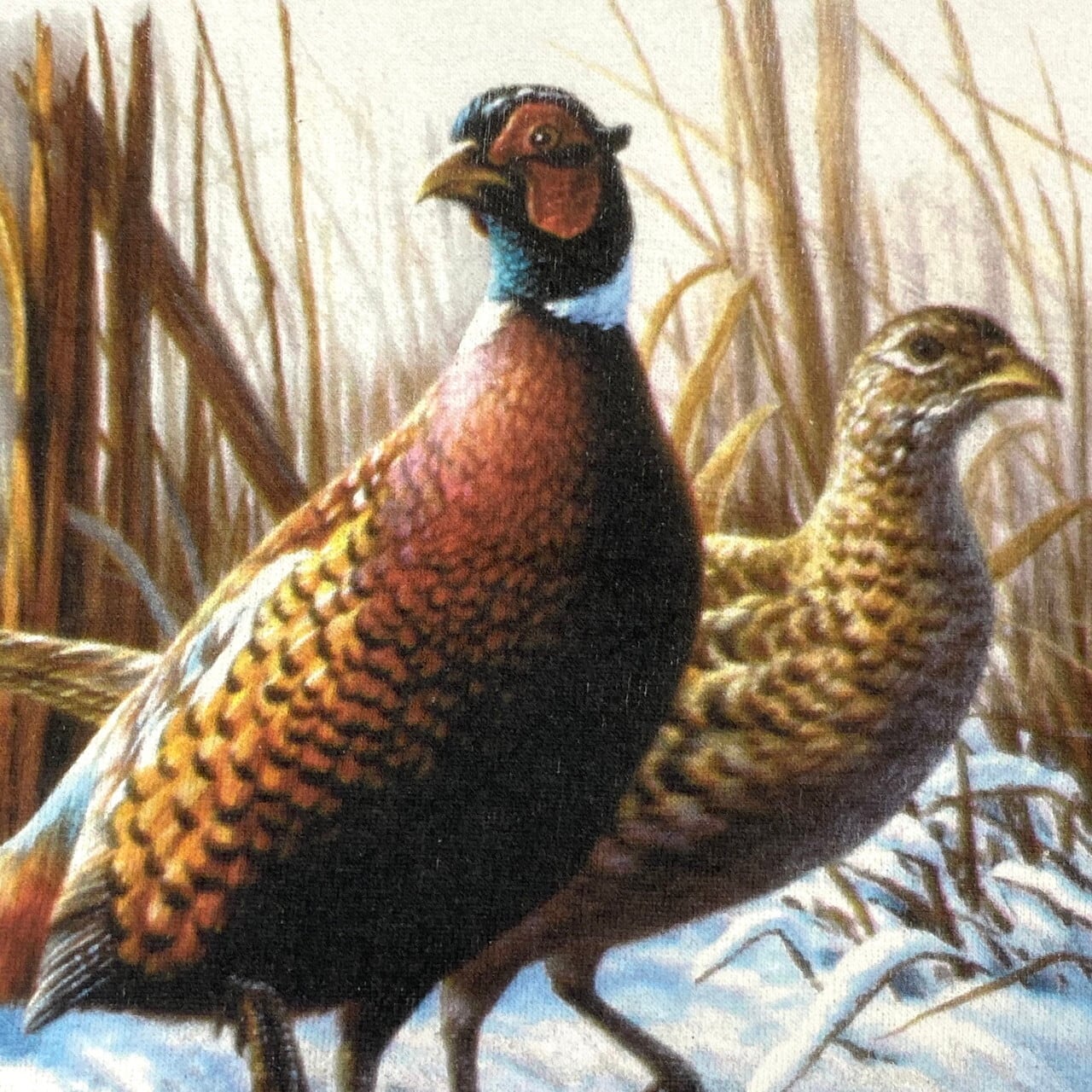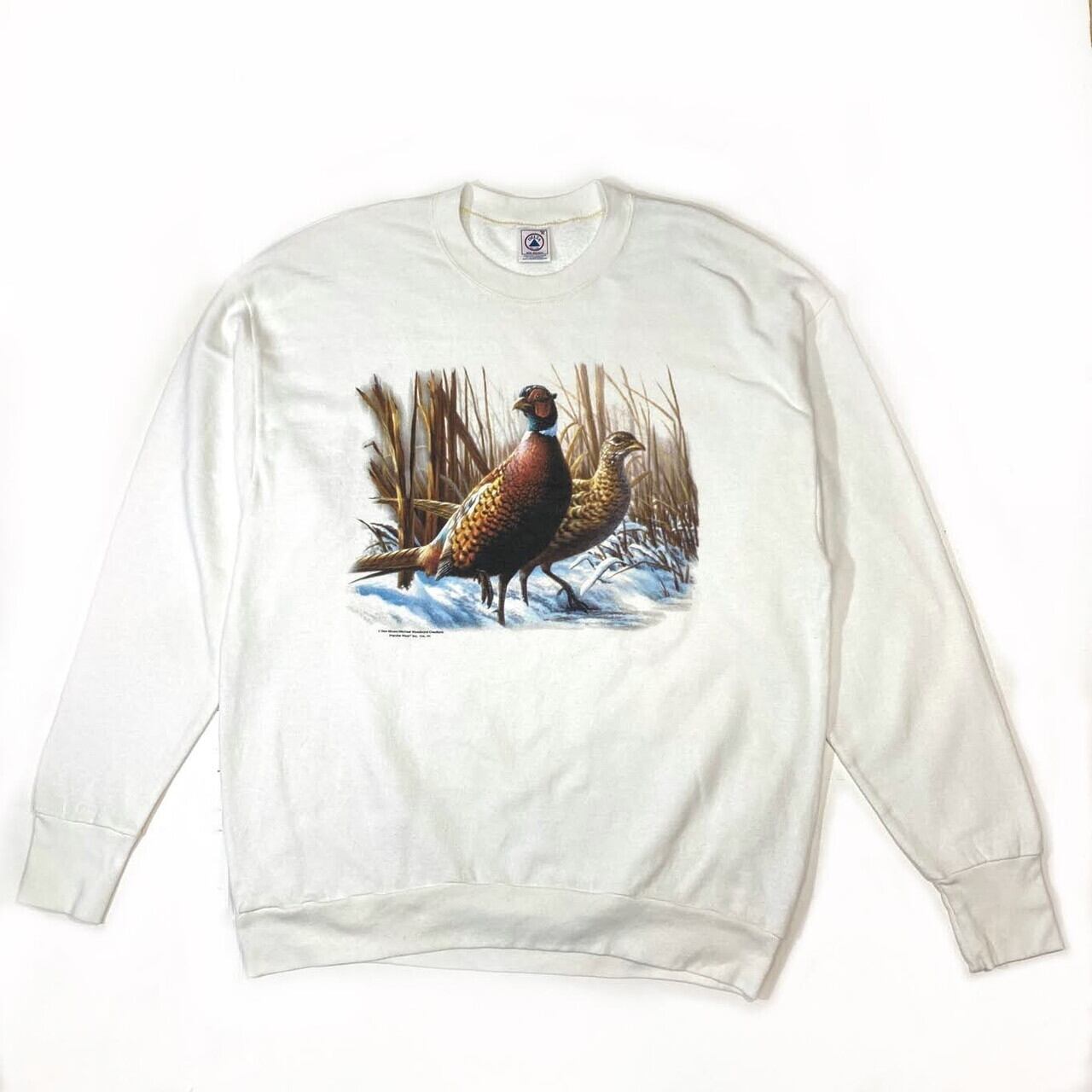 ■90年代 DELTA デルタ キジ アニマル プリント スウェットシャツ メンズXL 古着 レディース 動物 トレーナー 90S ビンテージ ヴィンテージ ホワイト 白