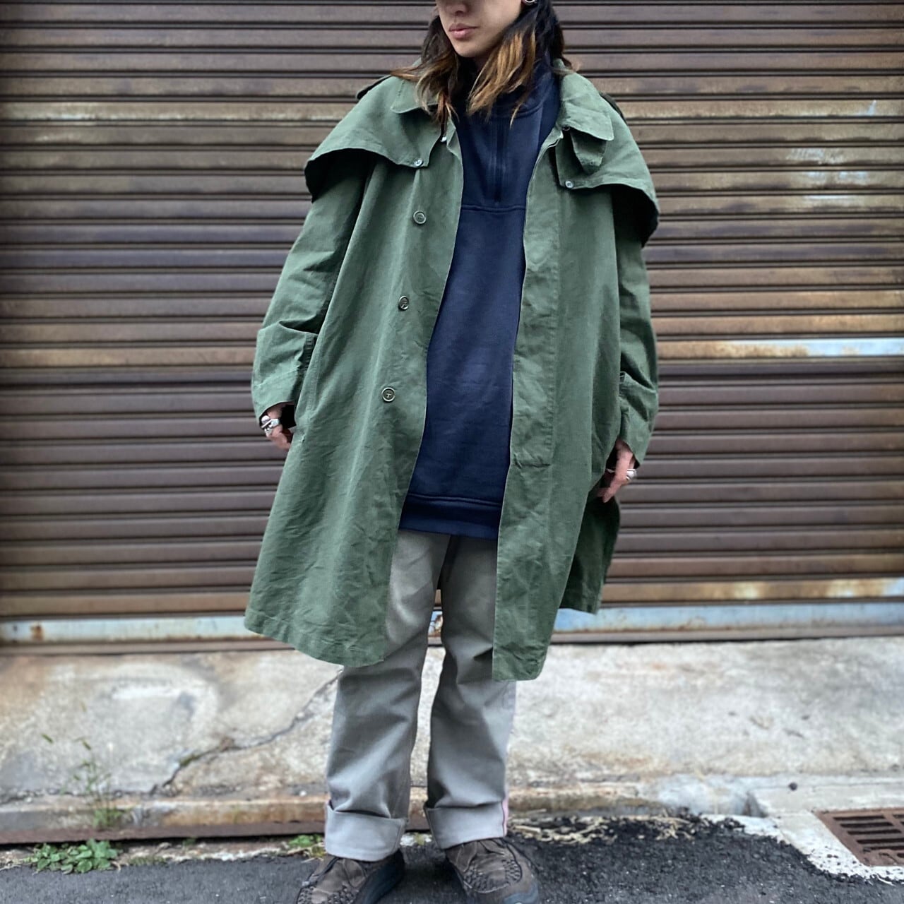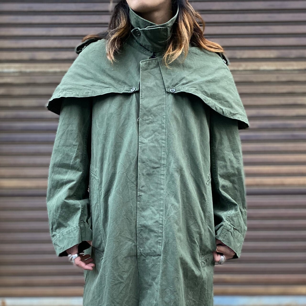 50〜60年代 ビンテージ フランス軍 ミリタリー フロックコート レインコート メンズL相当 古着 50s 60s ヴィンテージ カーキ オリーブグリーン セージグリーン【ミリタリージャケット】【VTG】