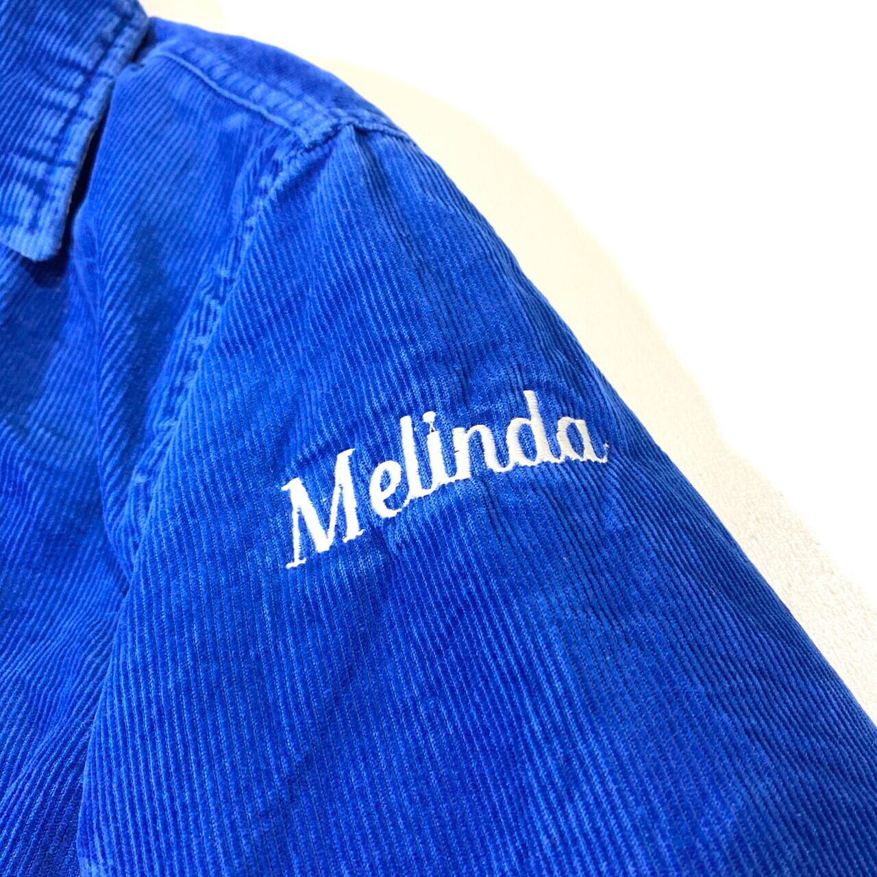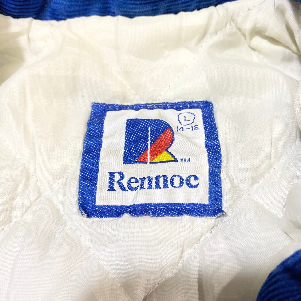 80〜90年代 Rennoc 刺繍入り コーデュロイジャケット レディースS相当 古着 80S 90S USA製 ビンテージ ブルー 襟付きスタジャン【ブルゾン・ジャケット】【WS2201】
