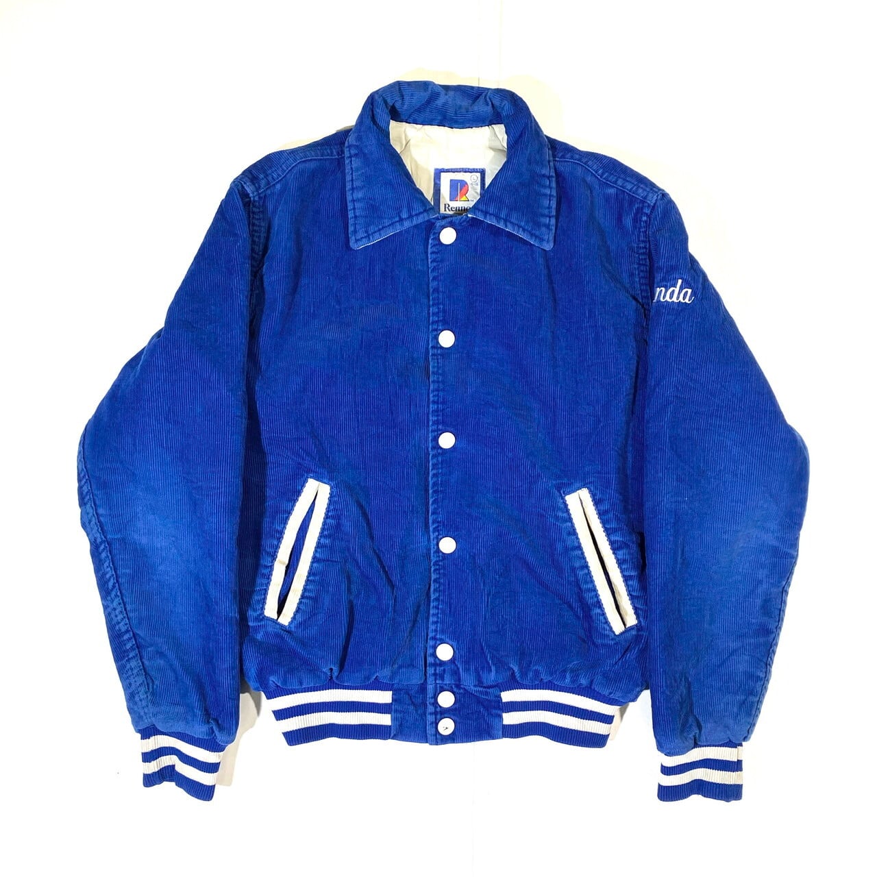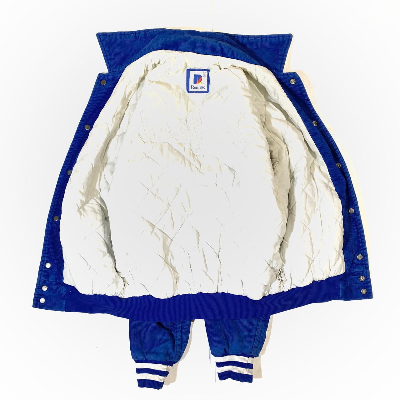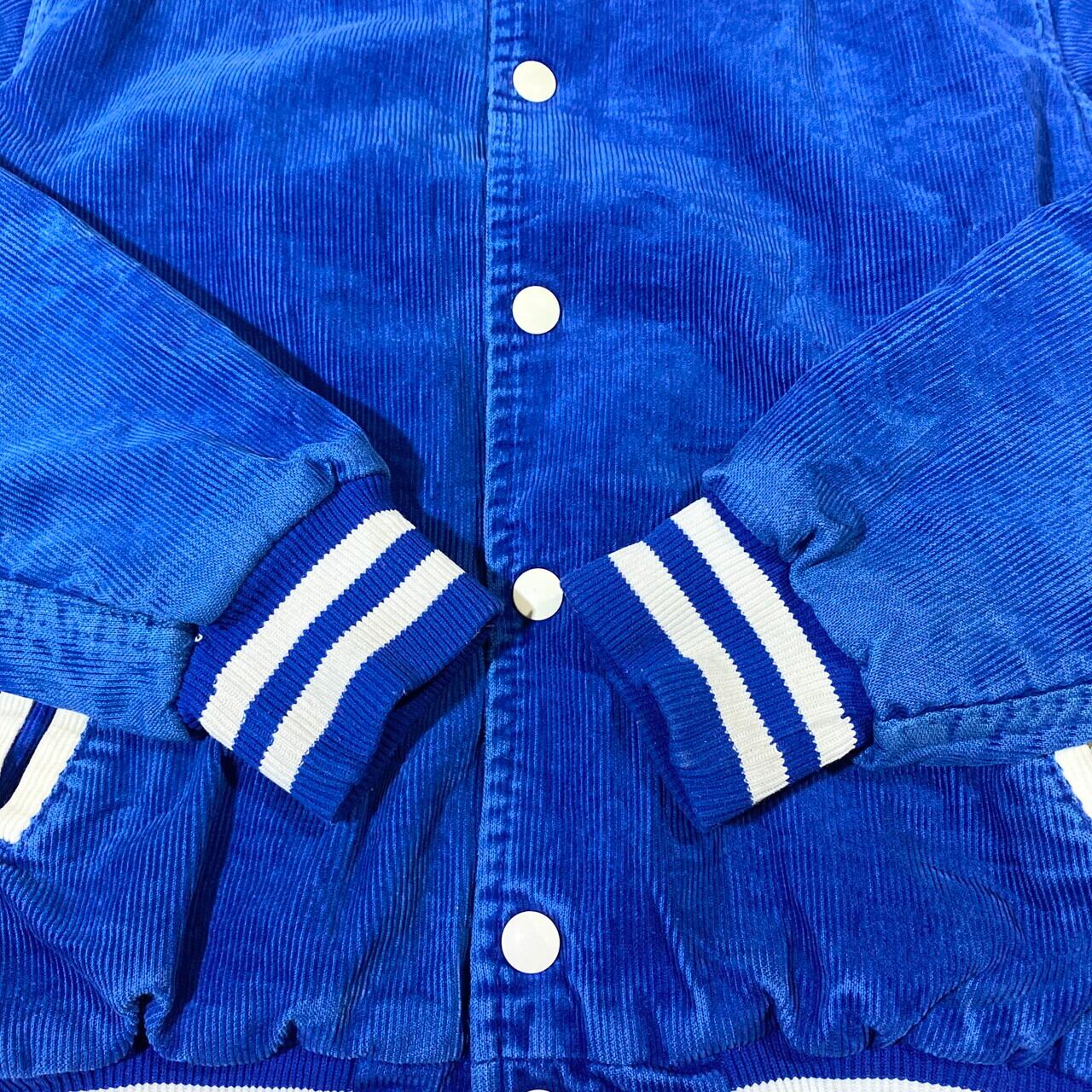 ■80~90年代 Rennoc コーデュロイジャケット レディースS相当 古着 80S 90S ビンテージ ブルー 襟付きスタジャン【ブルゾン・ジャケット】