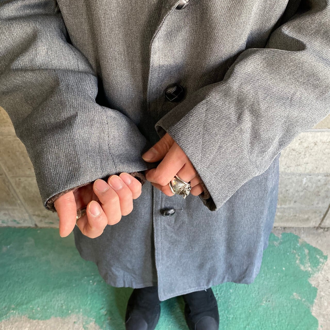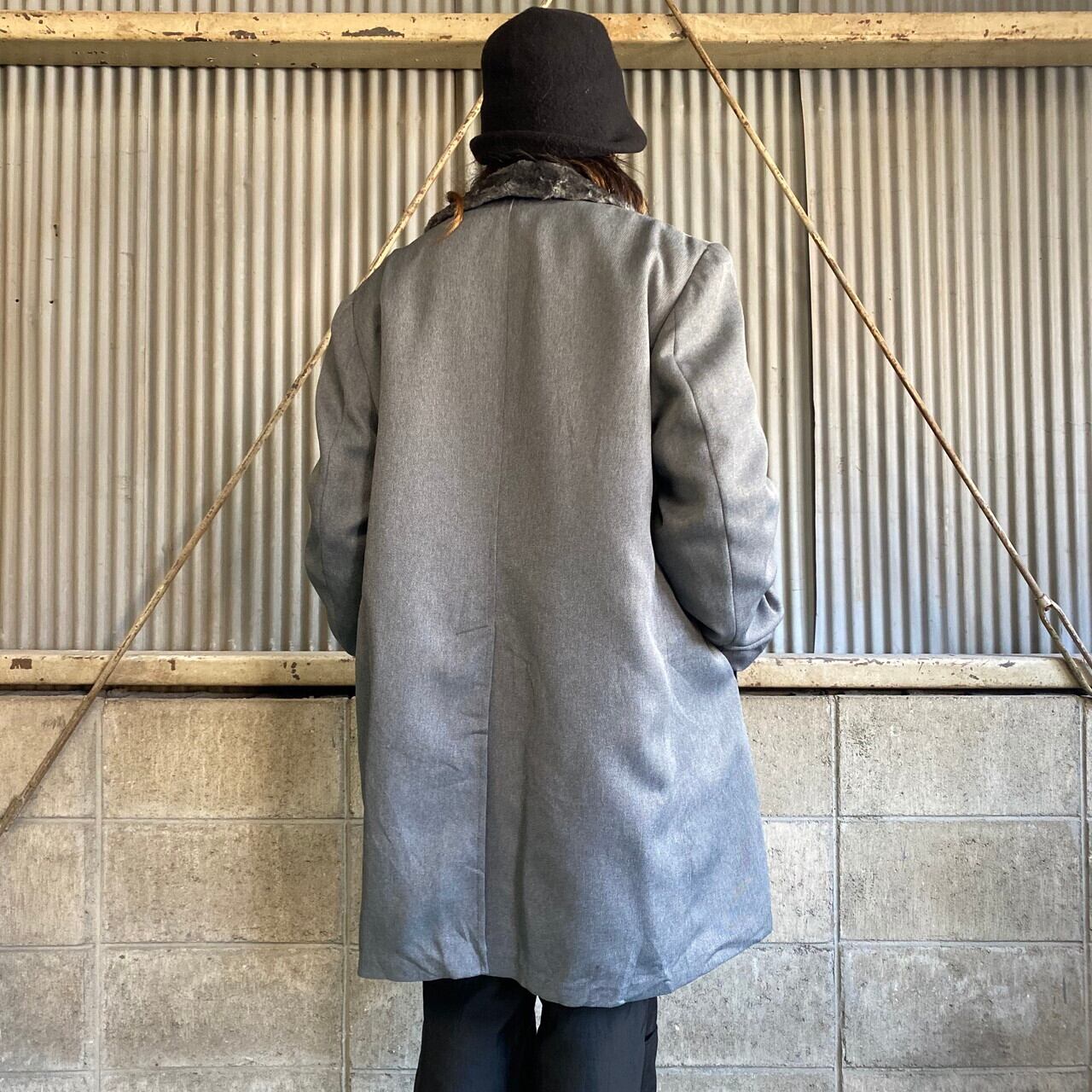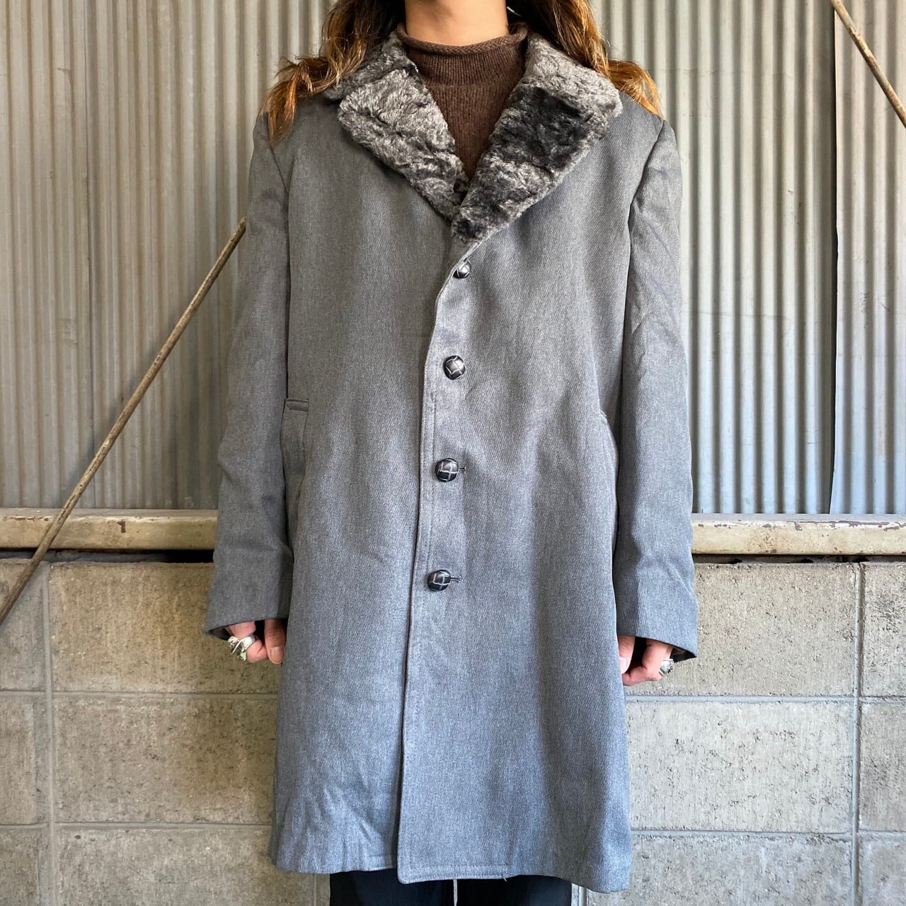 LONDON FOG ロンドンフォグ ギャングコート ボアコート メンズXL相当 古着 チェスターコート ロングコート ヘリンボーン グレー 灰色 肩パッド入り 襟ボア【コート】【SA30】【AL20】